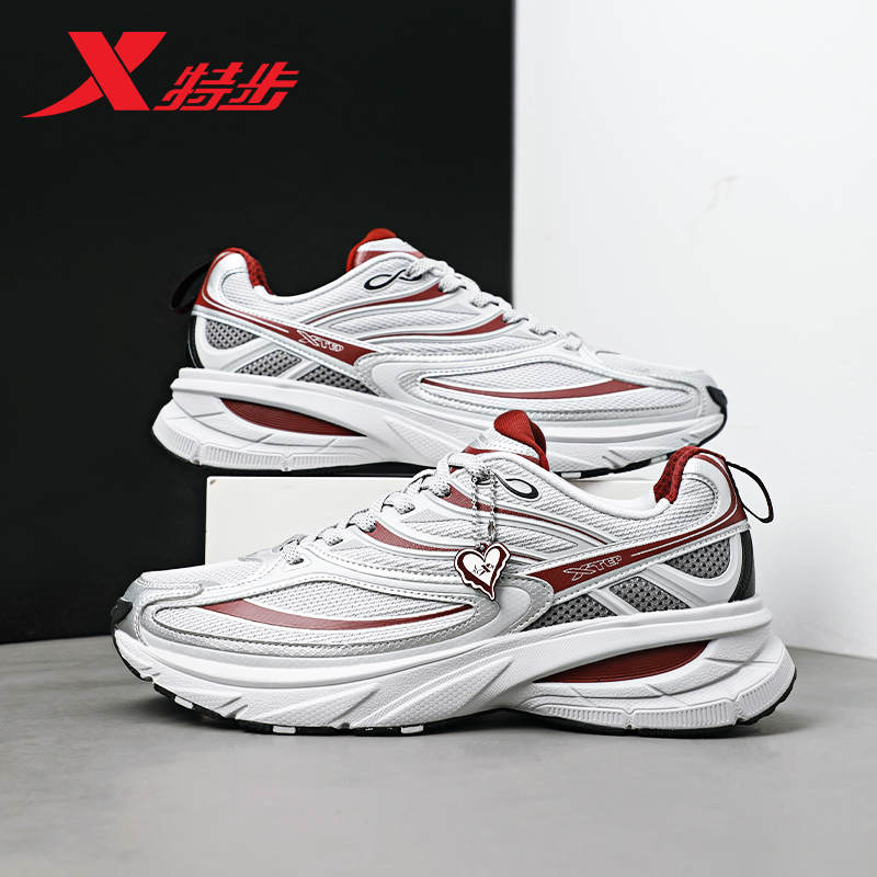 特步男鞋小巴斯克休闲鞋秋季透气网面透气轻便复古运动老爹鞋子男