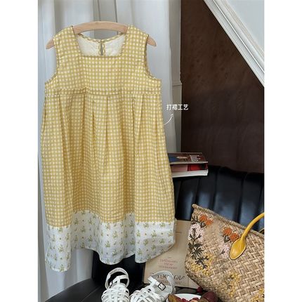 女童连衣裙夏季儿童夏装碎花背心裙子格子无袖纯棉宝宝公主裙薄款