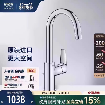 高仪斯达进口高抛旋转台盆龙头防溅双层冷热节水Grohe德国卫浴