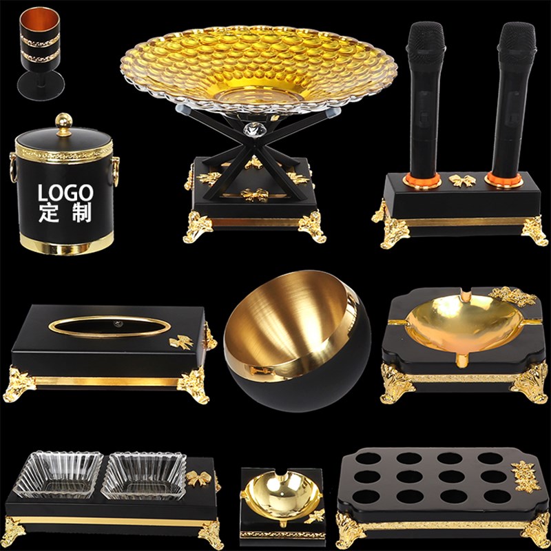 ktv摆台用品全套高档KTV包厢专用话筒架麦架烟灰缸水果盘座不锈钢