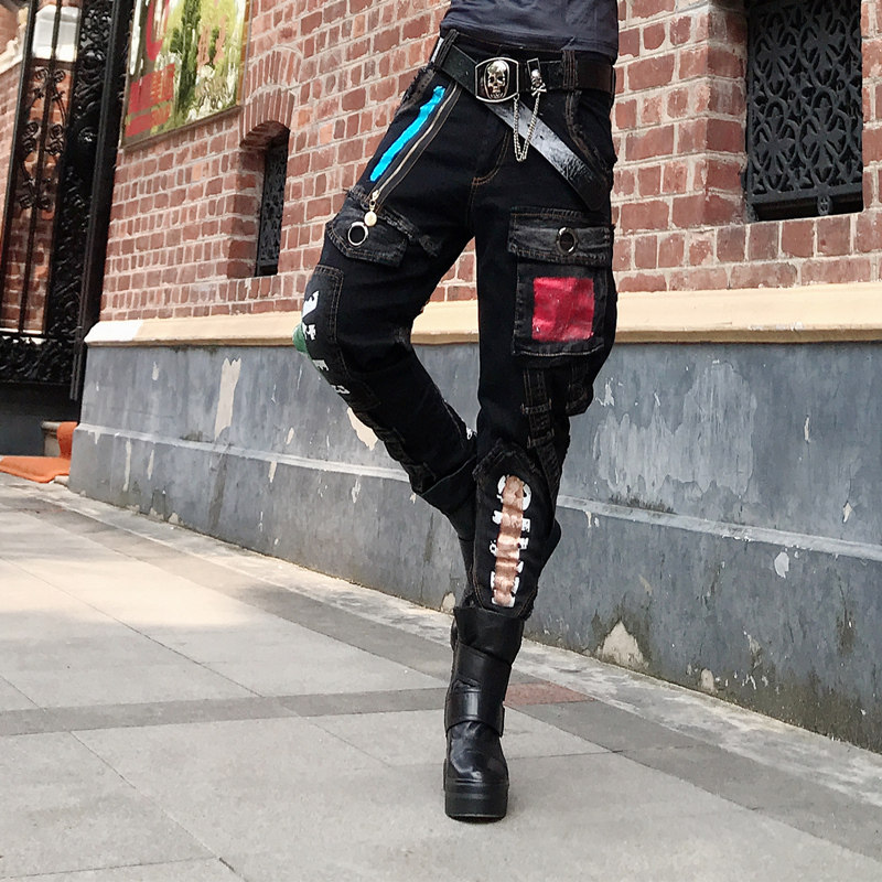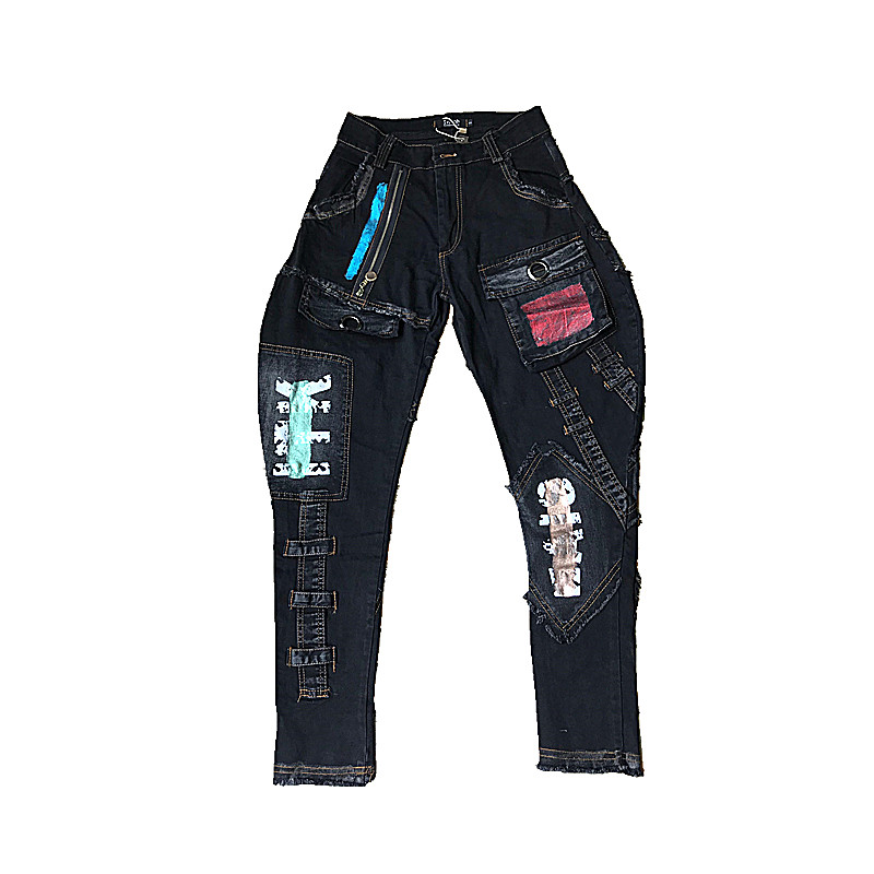 帅气bf风个性长裤朋克风牛仔裤
