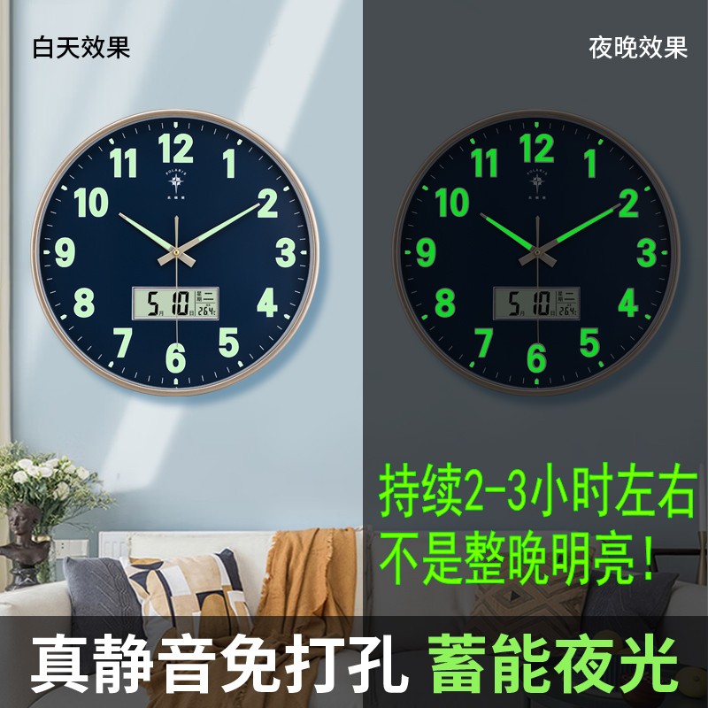 北极星夜光钟表客厅挂钟卧室静音时钟简约创意时尚家用日历石英钟
