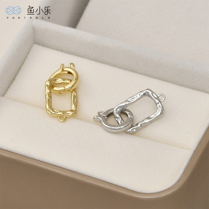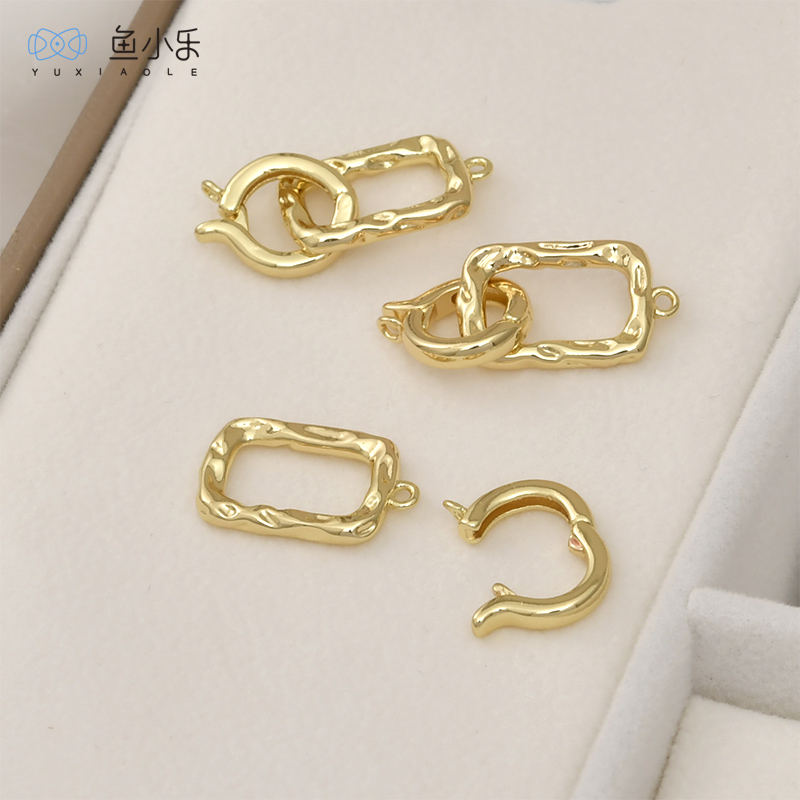 铜镀14k金保色肌理方块椭圆收尾扣连接扣diy手链项链饰品配件材料