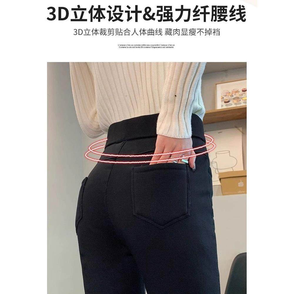 羊羔绒打底裤女秋冬季加绒加厚东北一体棉裤高腰小脚外穿黑色裤子