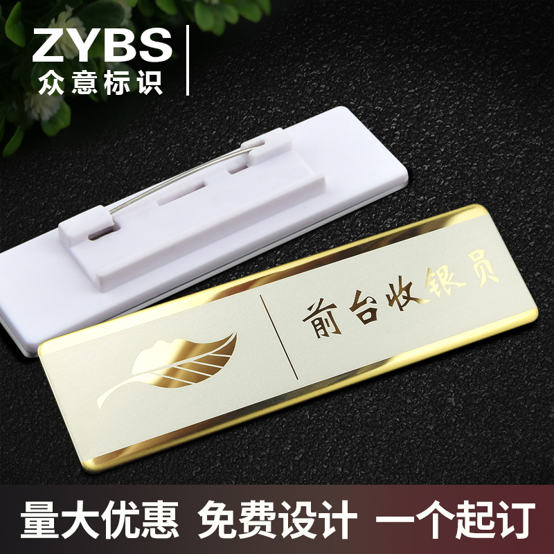 金属胸牌定做不锈钢镭射工号牌高档别针工牌徽章胸章胸卡定制