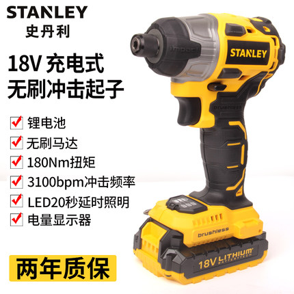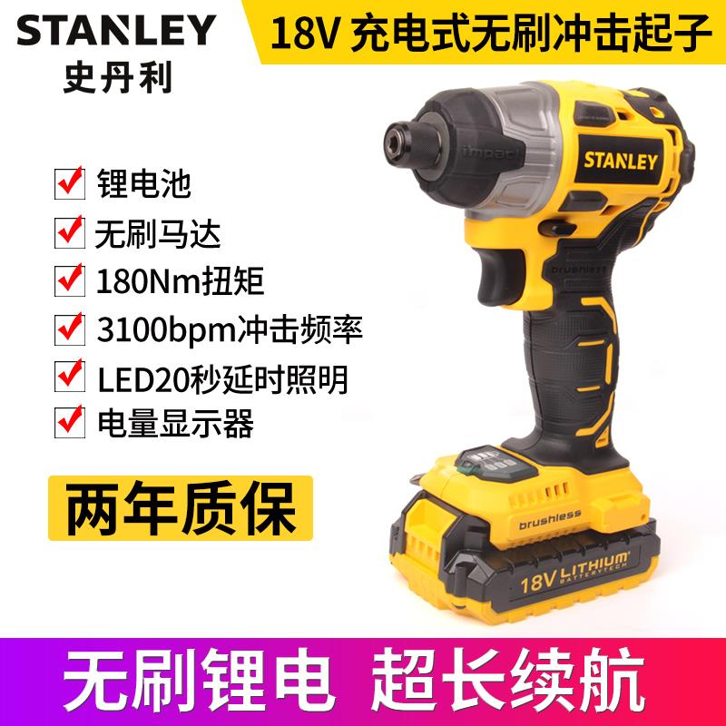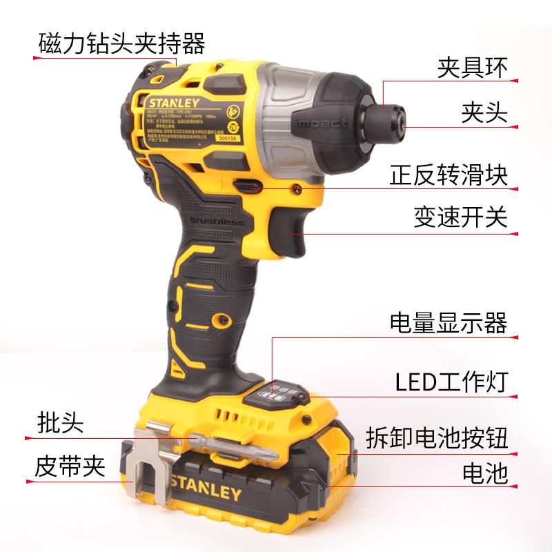 史丹利无刷锂电起子专业级电动螺丝刀电批充电式冲击起子电动扳手