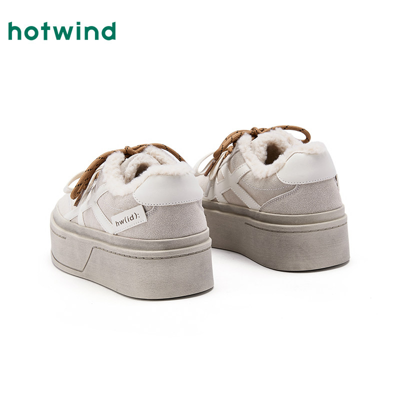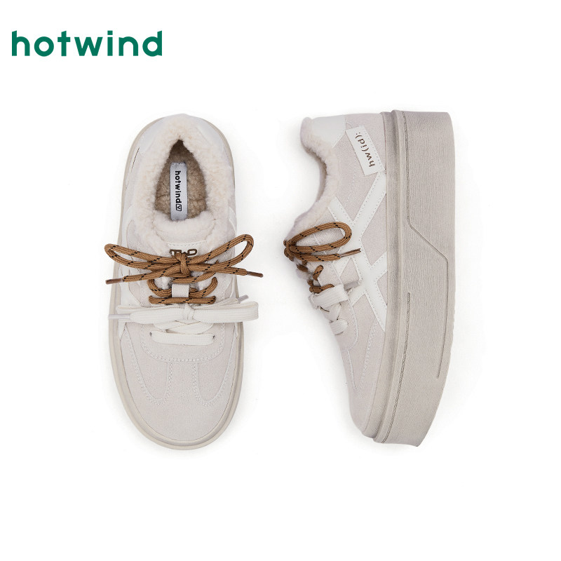 热风厚底德训鞋女2025年冬季新款加绒保暖休闲鞋百搭运动女板鞋子
