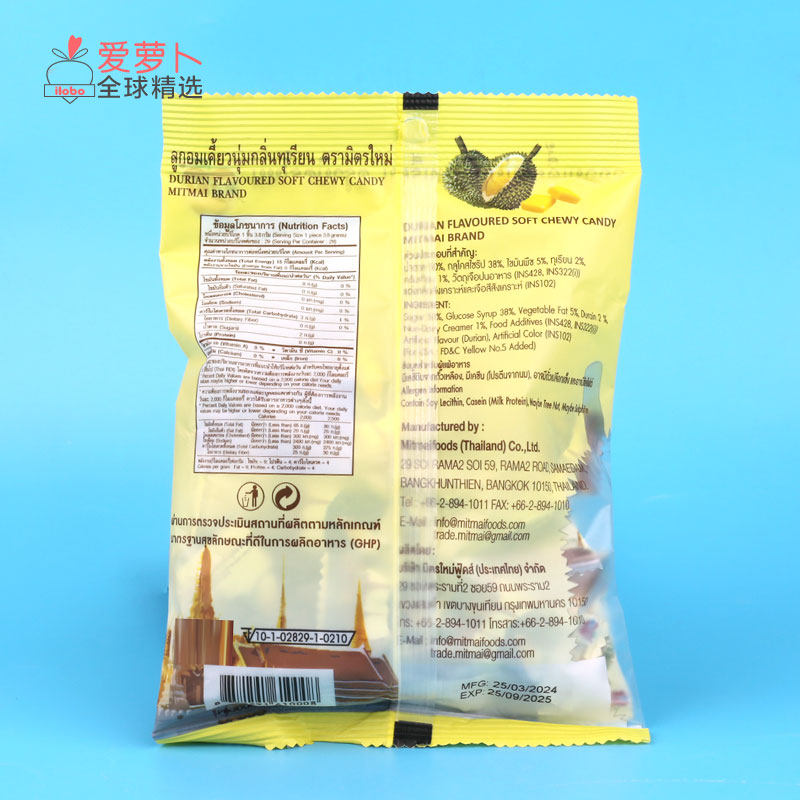 泰国MITMAI榴莲味山竹味软糖小零食榴莲糖山竹奶糖 110g