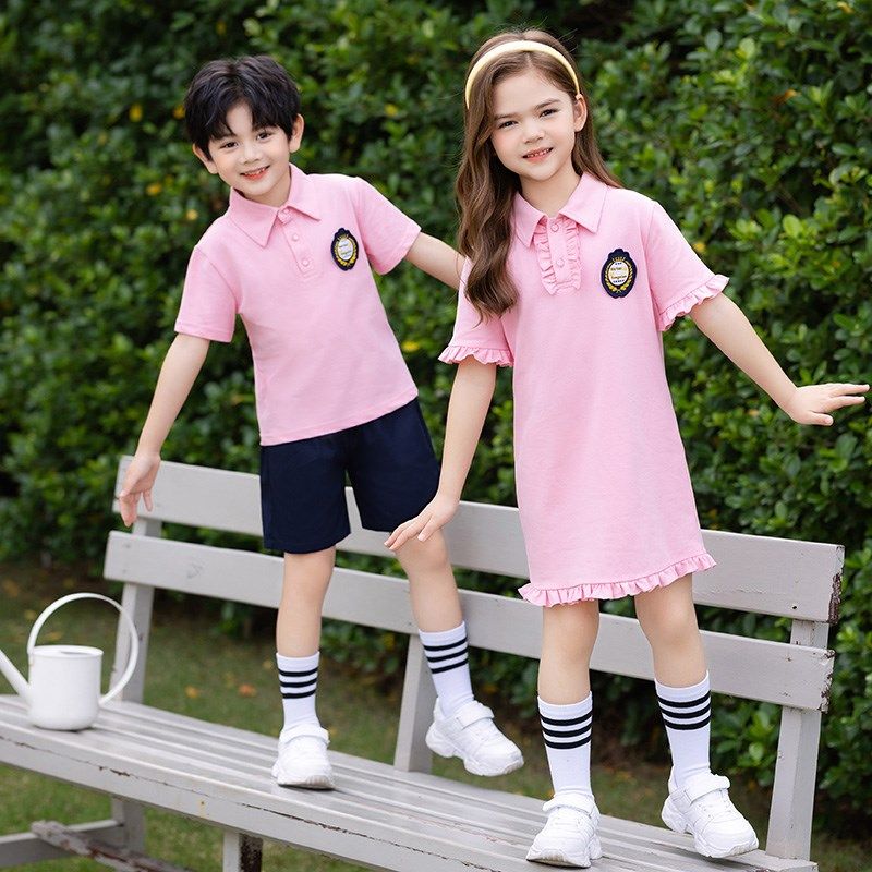 小学生夏季校服h幼儿园园服夏装儿童粉色班服英伦学院风毕业照套