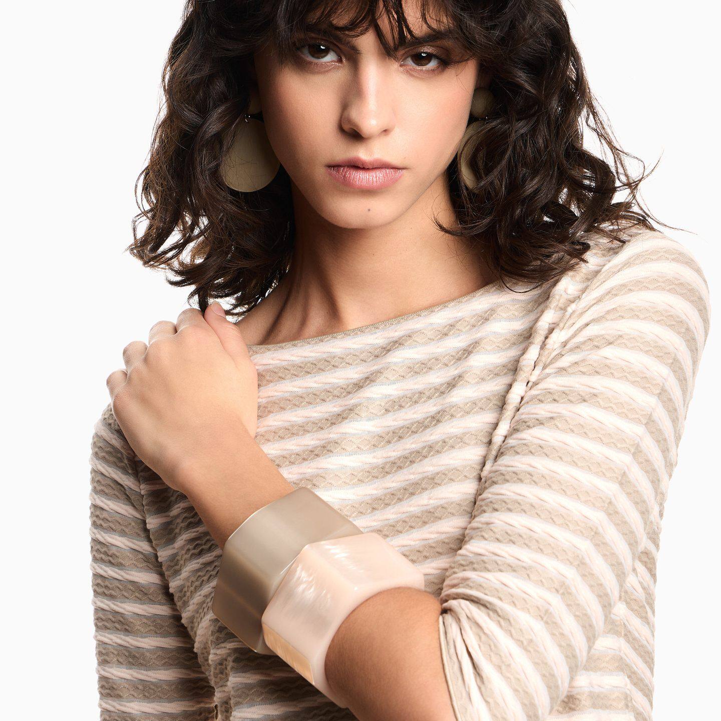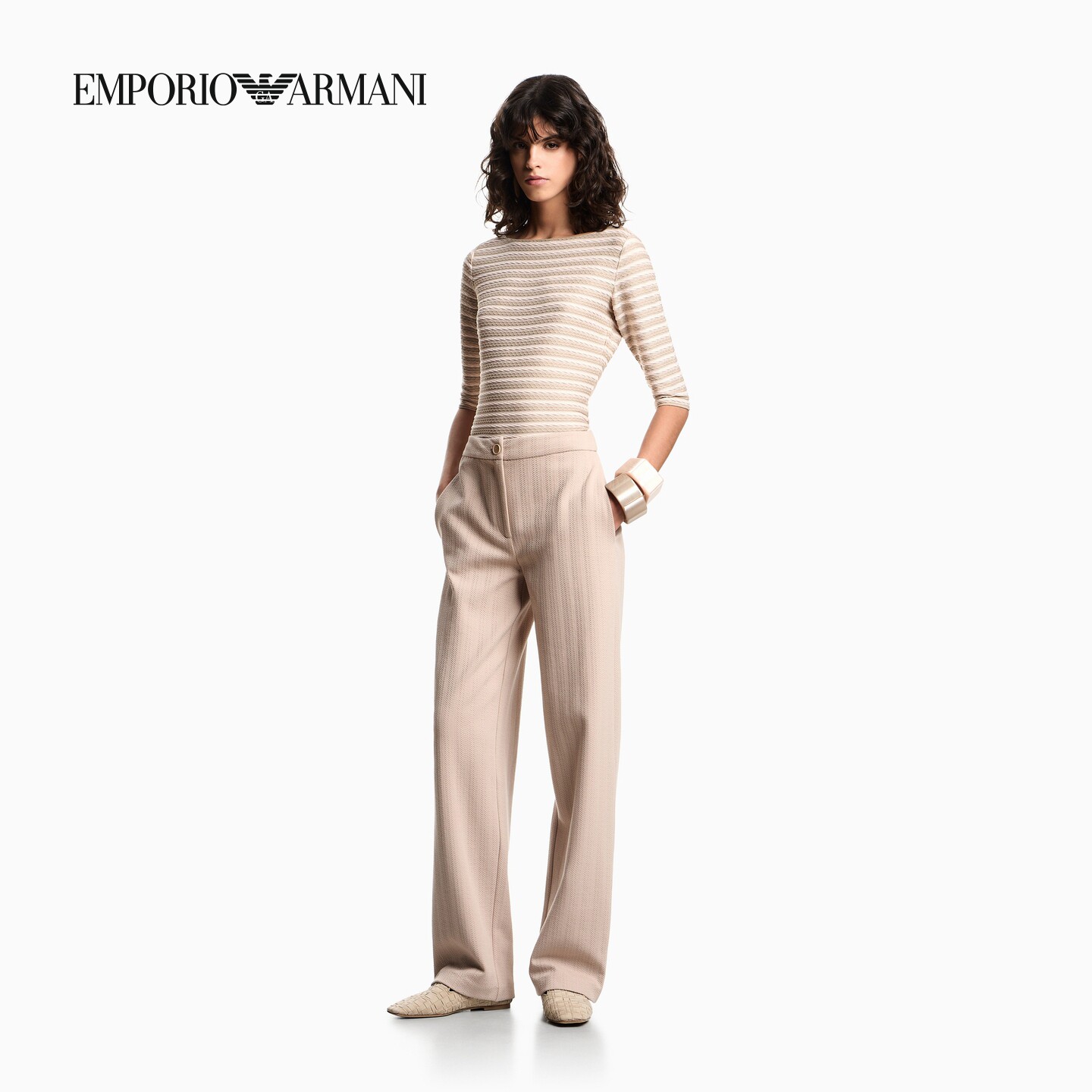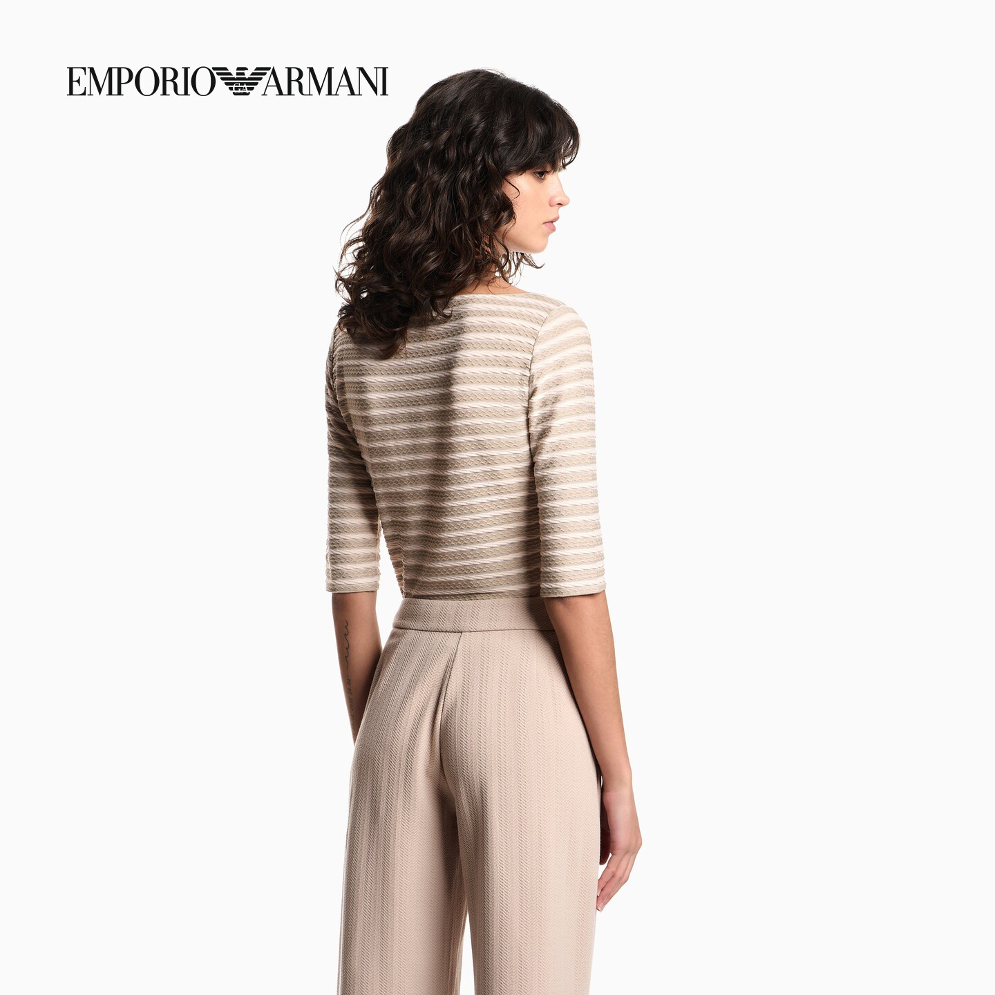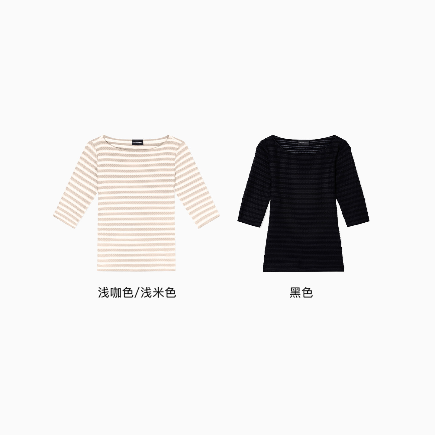 EMPORIO ARMANI/阿玛尼26年春季新款女士船领七分袖条纹针织衫