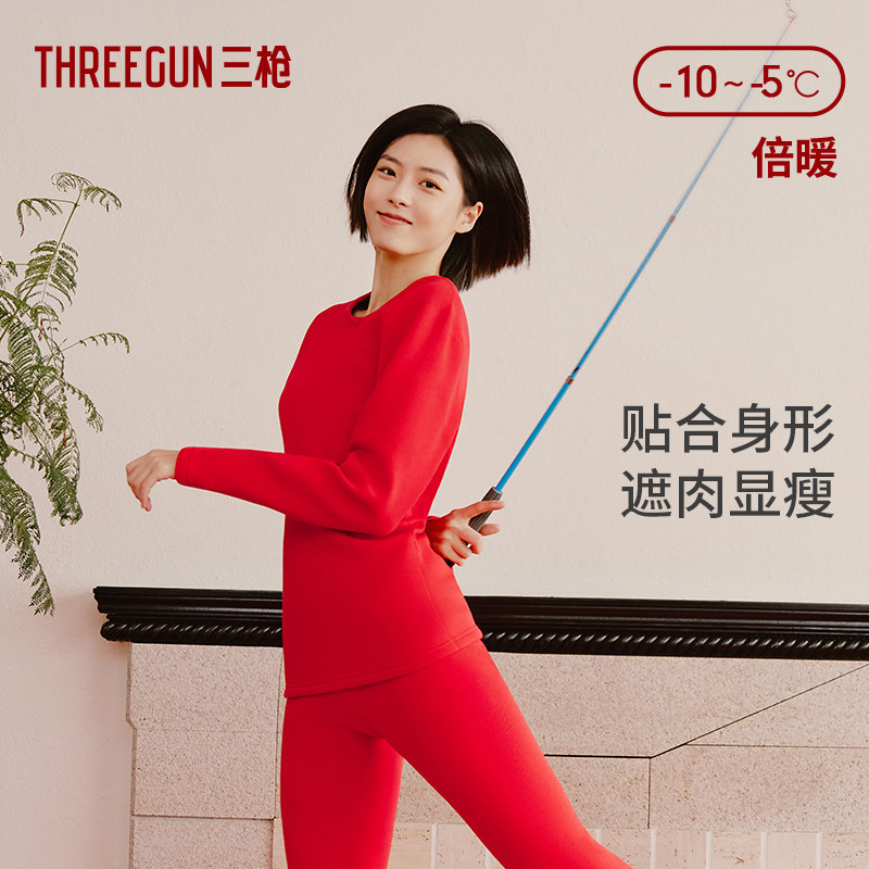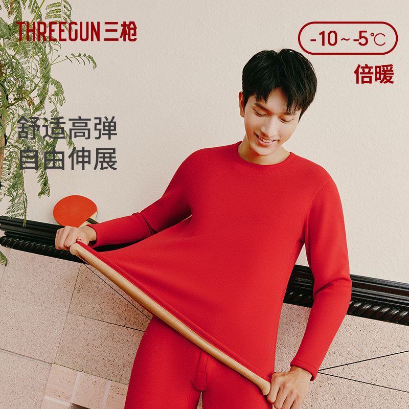 三枪绒立方保暖内衣男本命年马年大红秋衣秋裤套女加绒加厚羊毛