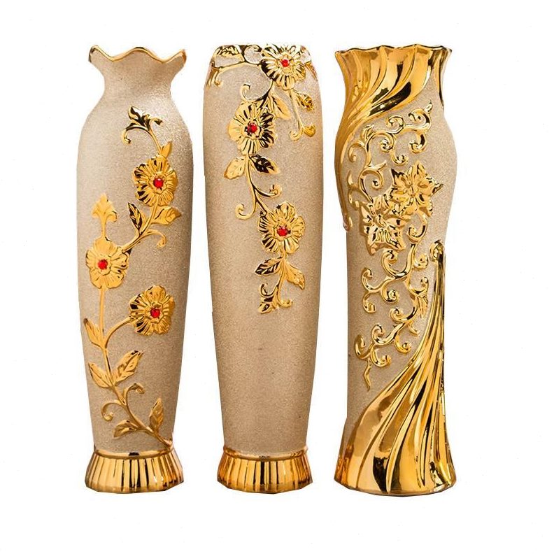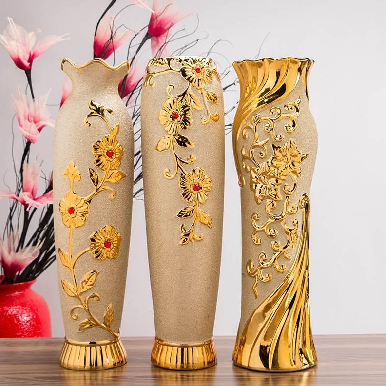 客厅电视柜陶瓷大花瓶欧式花瓶摆件cm落地60玄关金色大号插花