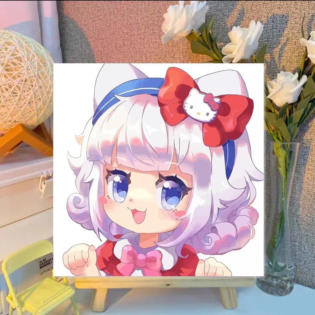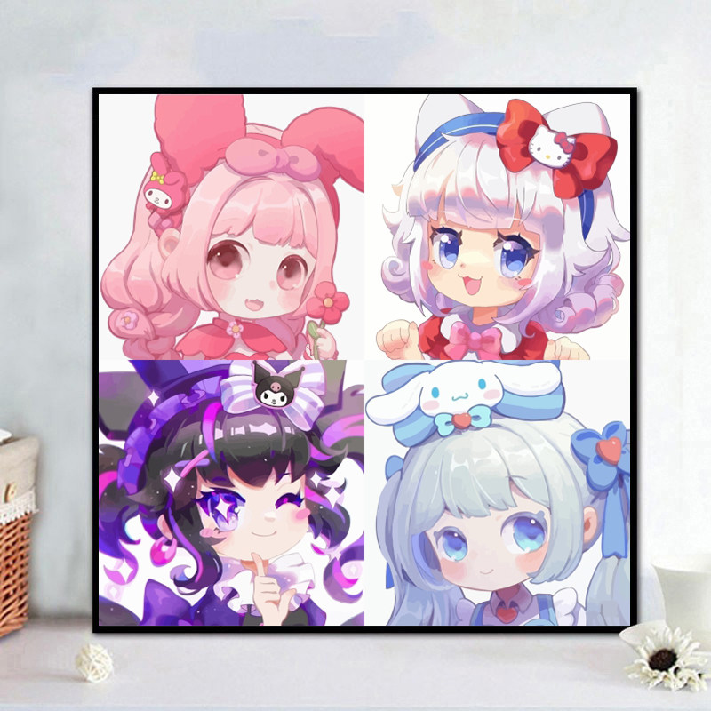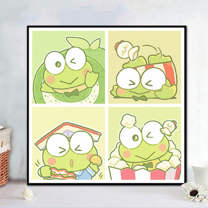 三丽鸥大眼蛙diy数字油画 手工填充涂色丙烯油彩画 儿童卡通画