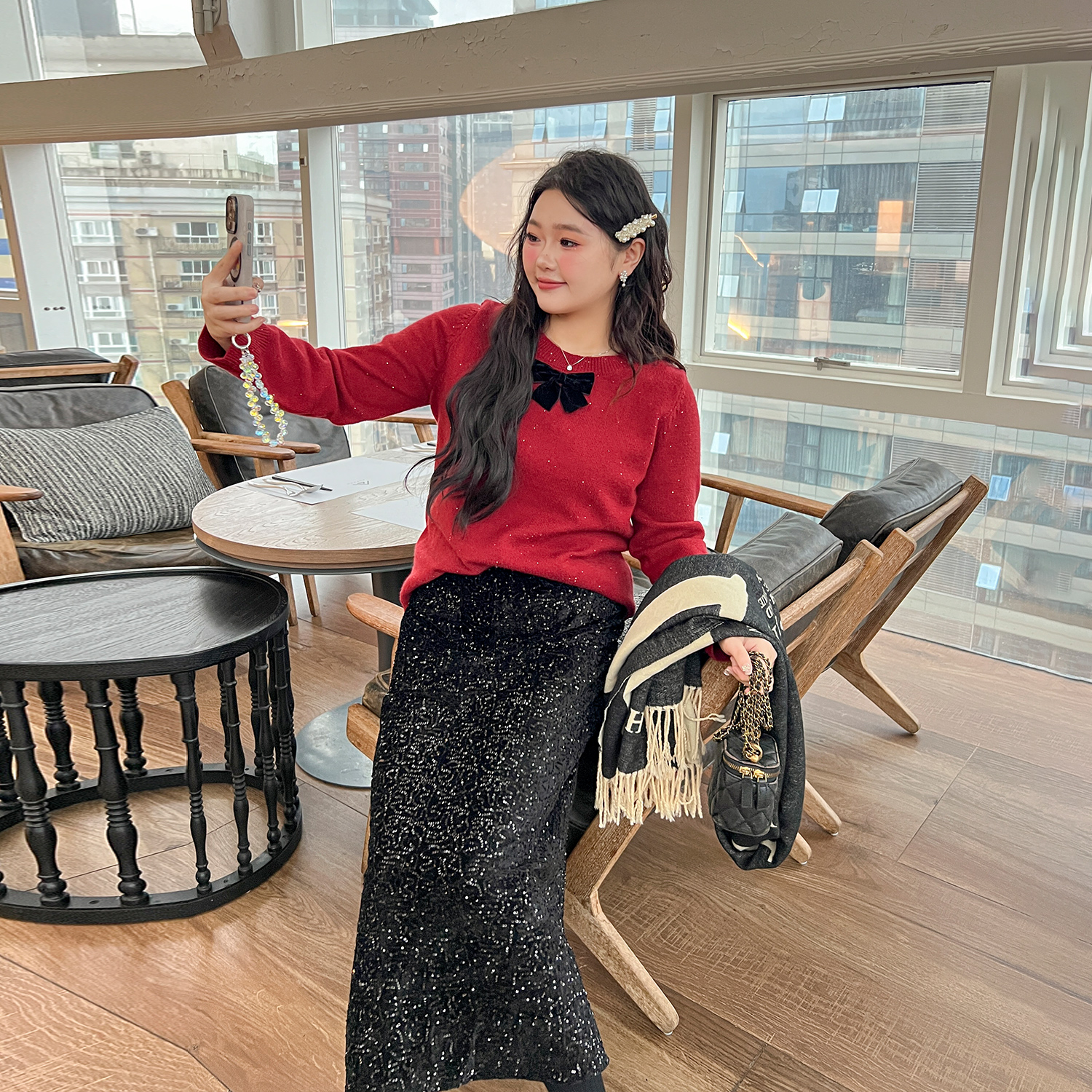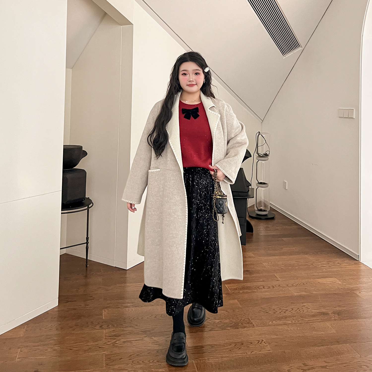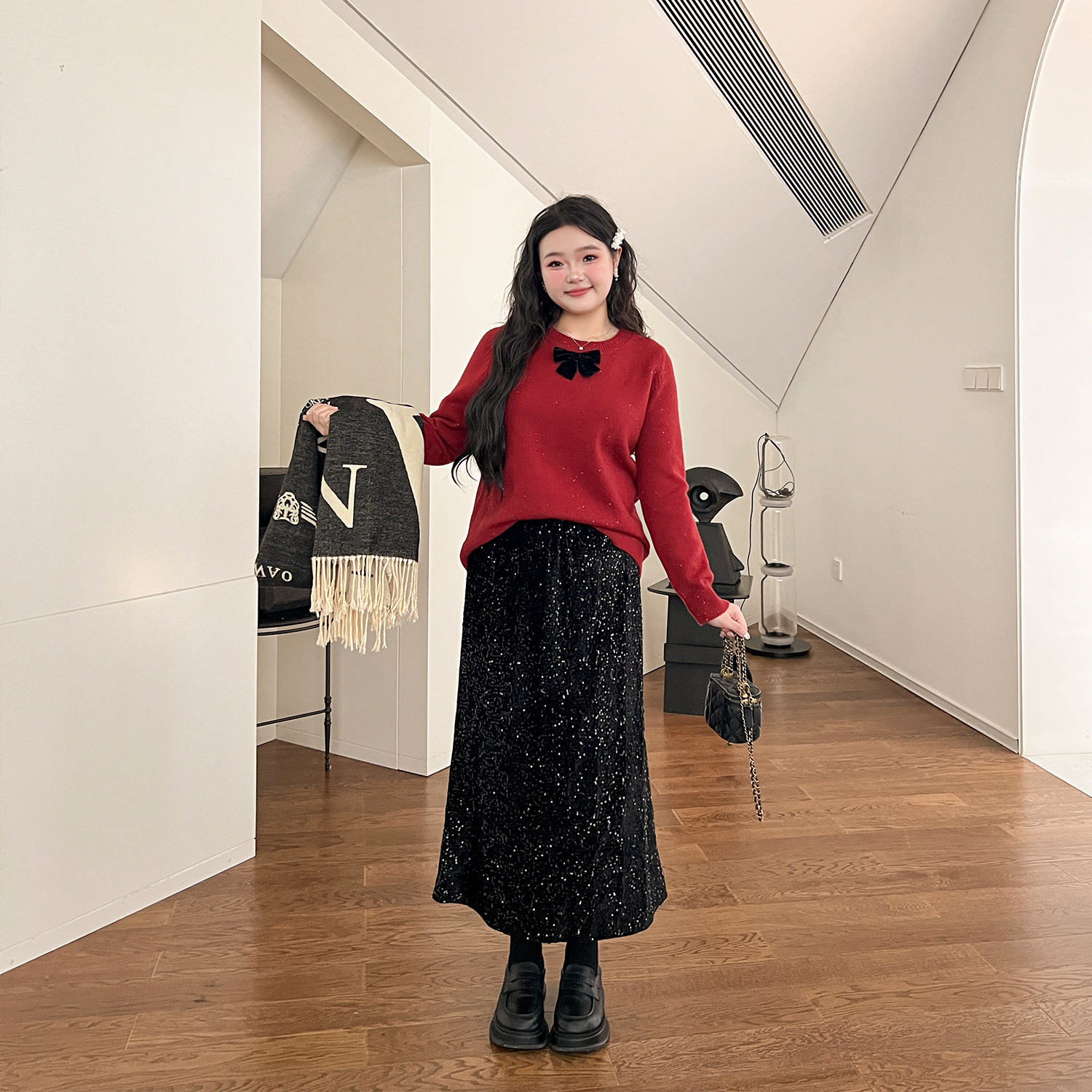 DM100大码百分百微胖mm女装冬纯欲风设计感亮片裙中长款a字半身裙