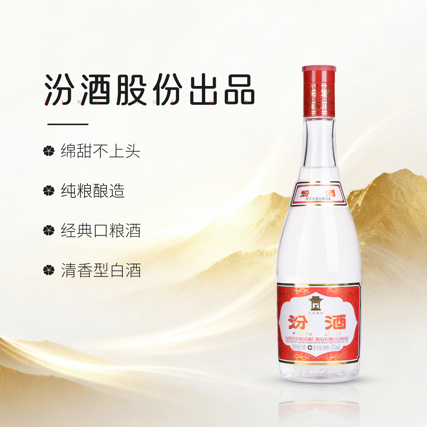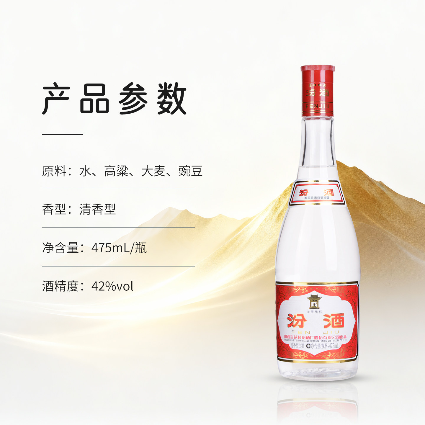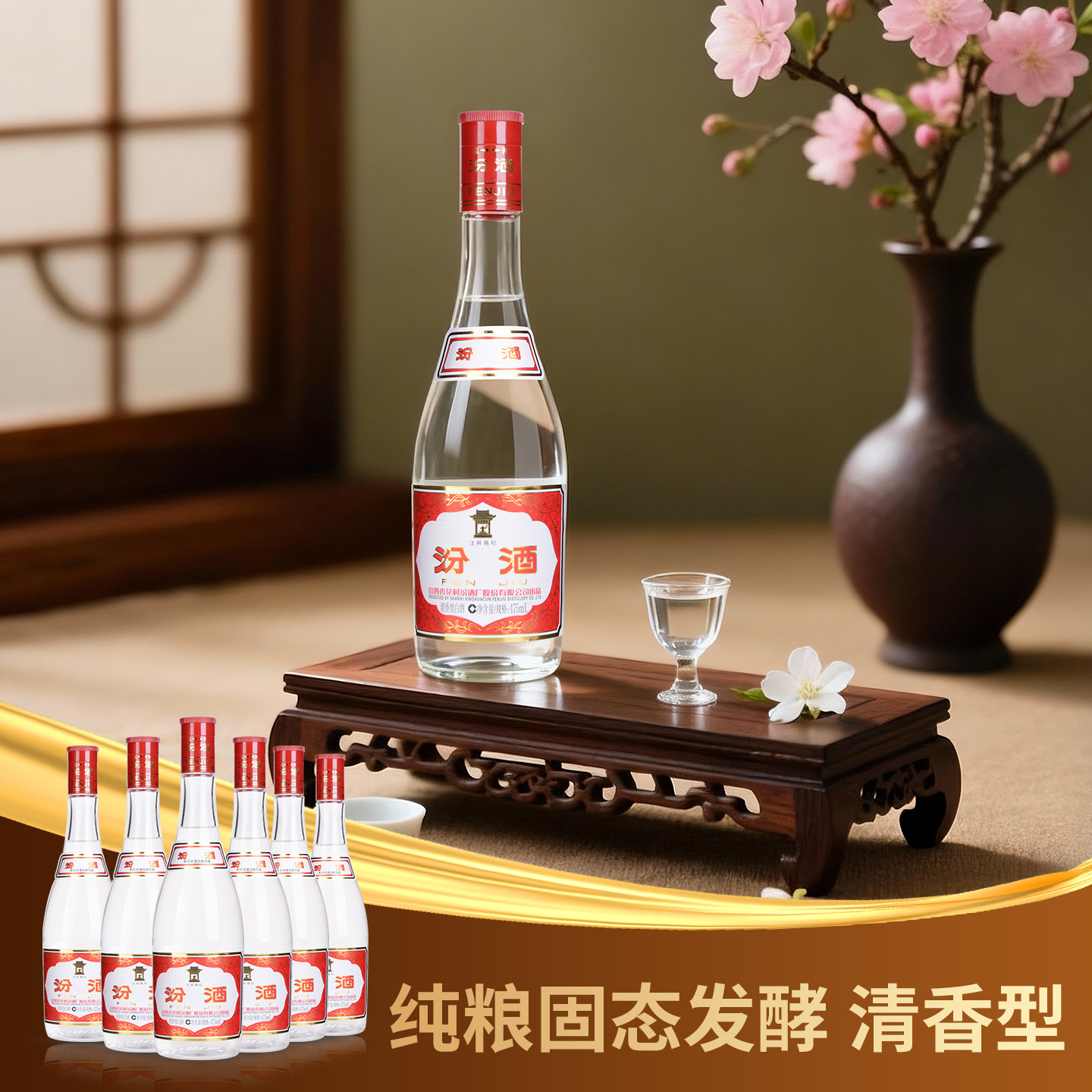 山西杏花村汾酒42度红盖汾475ml*6瓶纯粮食低度口粮白酒