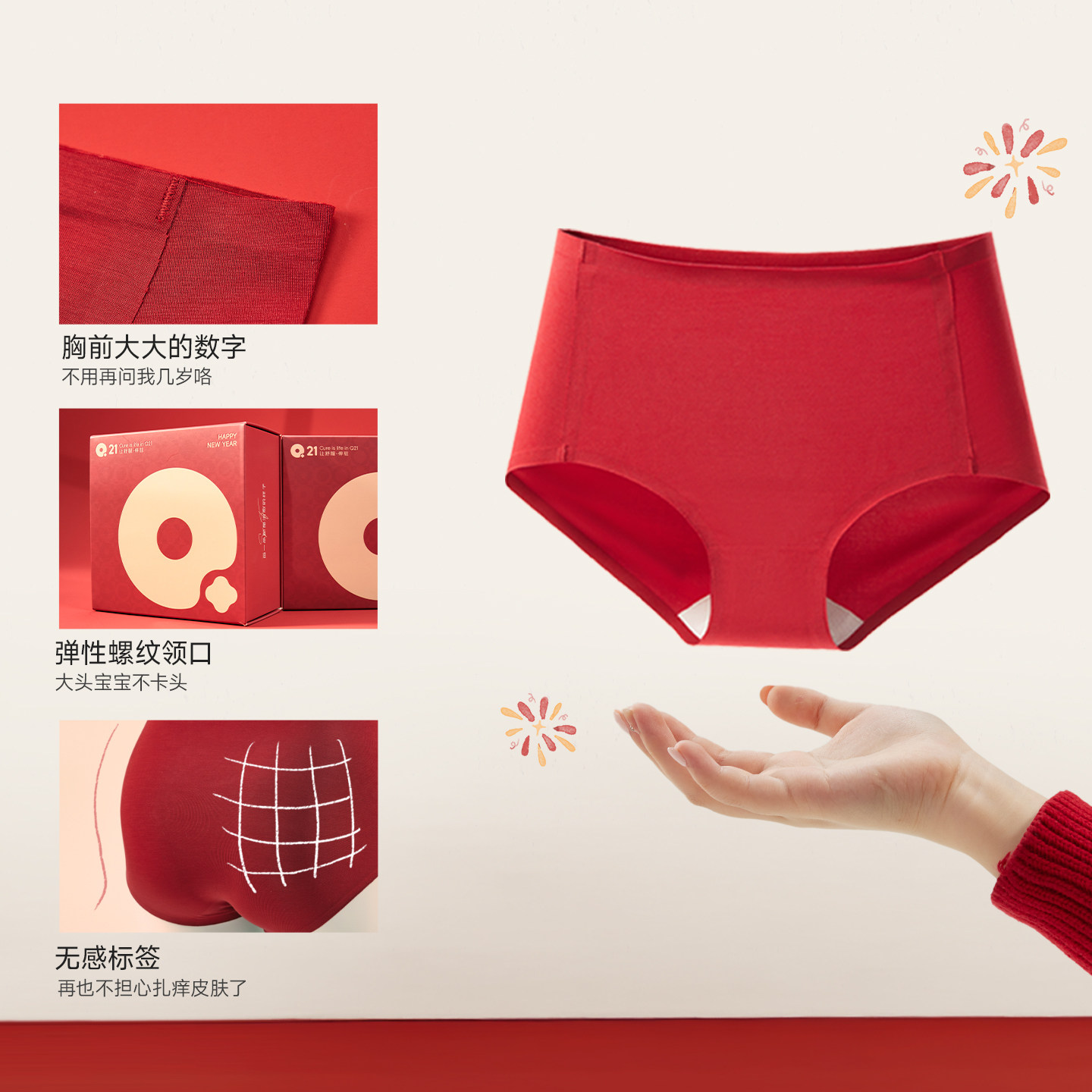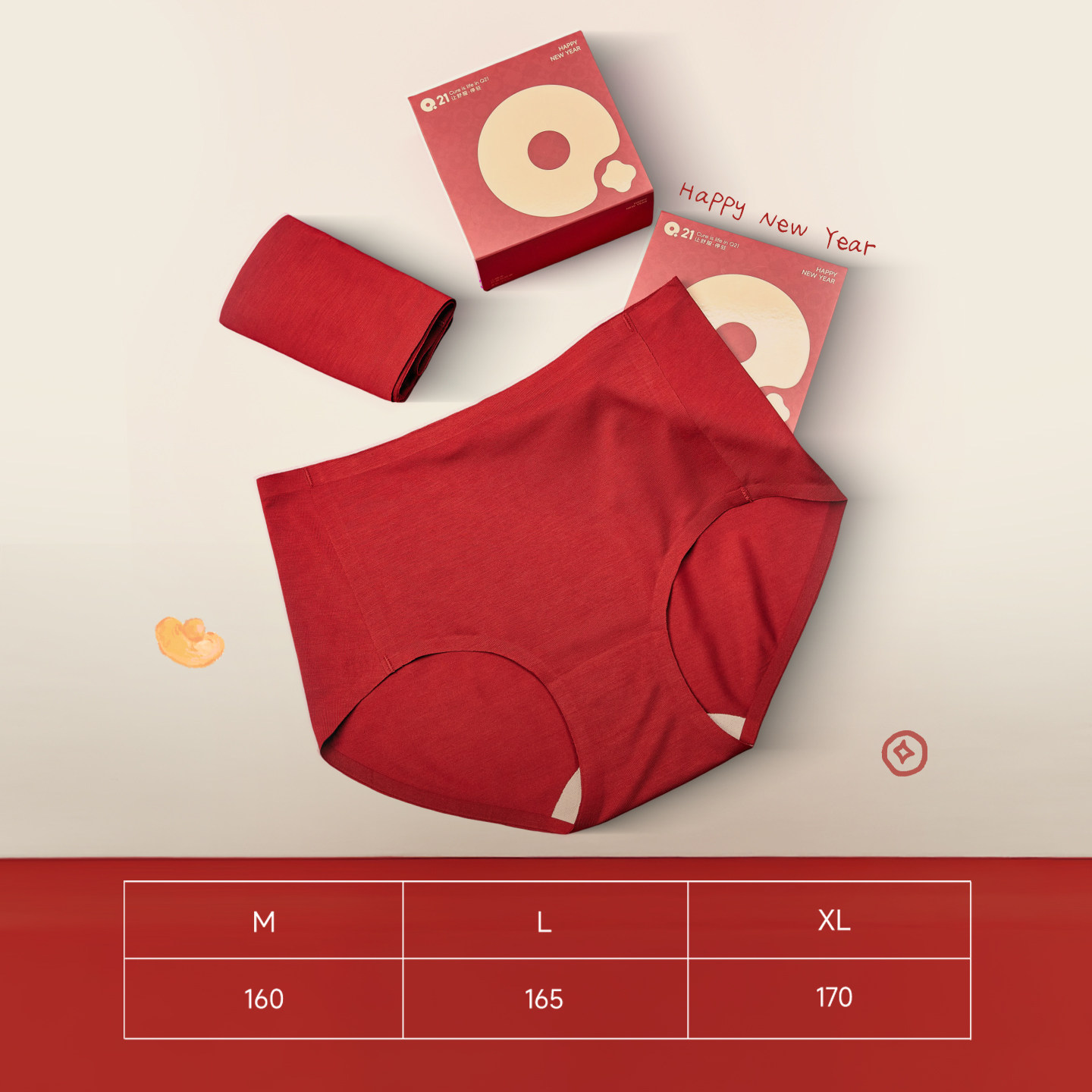 Q21新年红运80支莫代尔桑蚕丝女士内裤新年红色礼盒本命年内裤