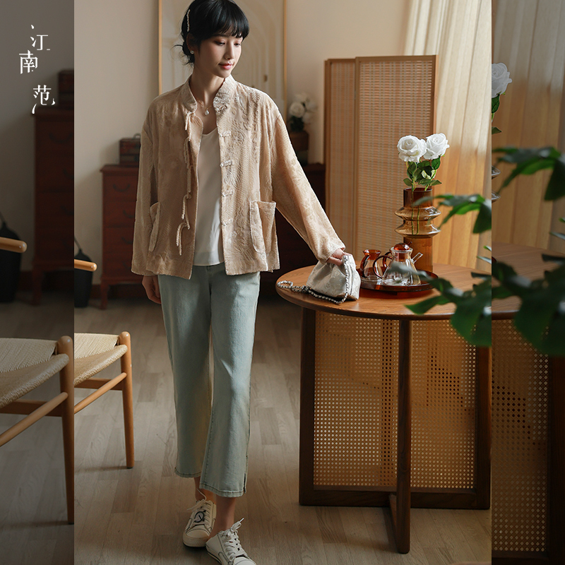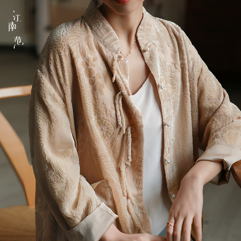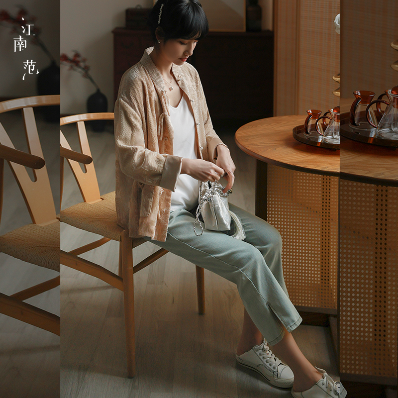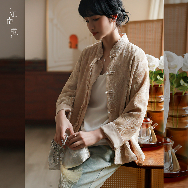 江南范新中式丝绒改良唐装上衣2025早春轻国风百搭气质开山外套