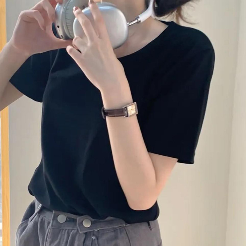 欧洲站女装2026新款欧货黑色短袖t恤女夏季透气纯棉宽松ins体恤瘦