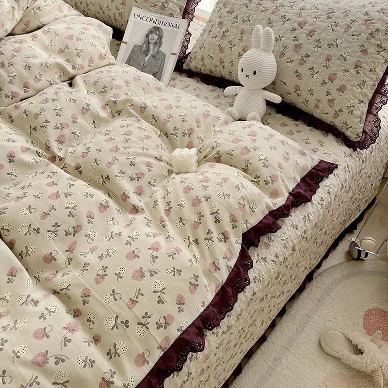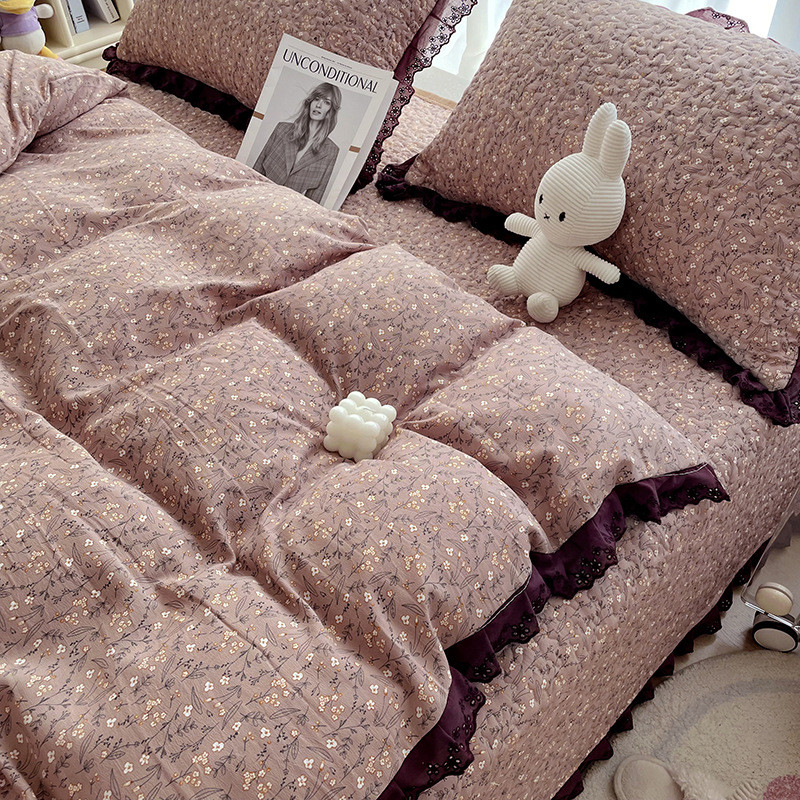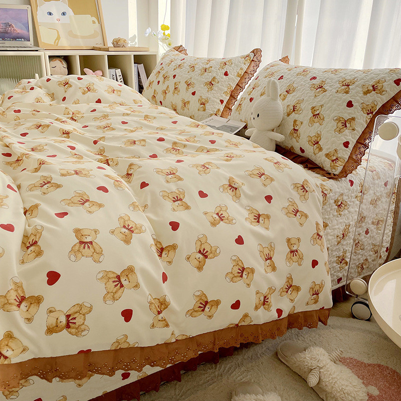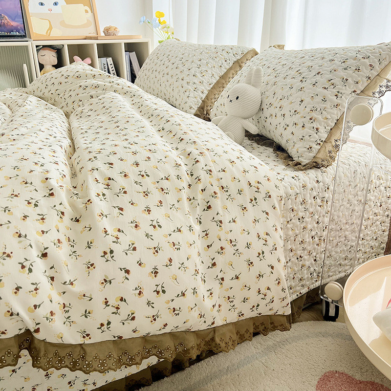 v9d@法式床盖四件套春夏榻榻米炕盖加厚夹炕棉床单盖床罩三件套可