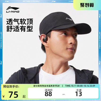 李宁配件 跑步系列 男女同款抗紫外线防晒软顶运动棒球帽鸭舌帽