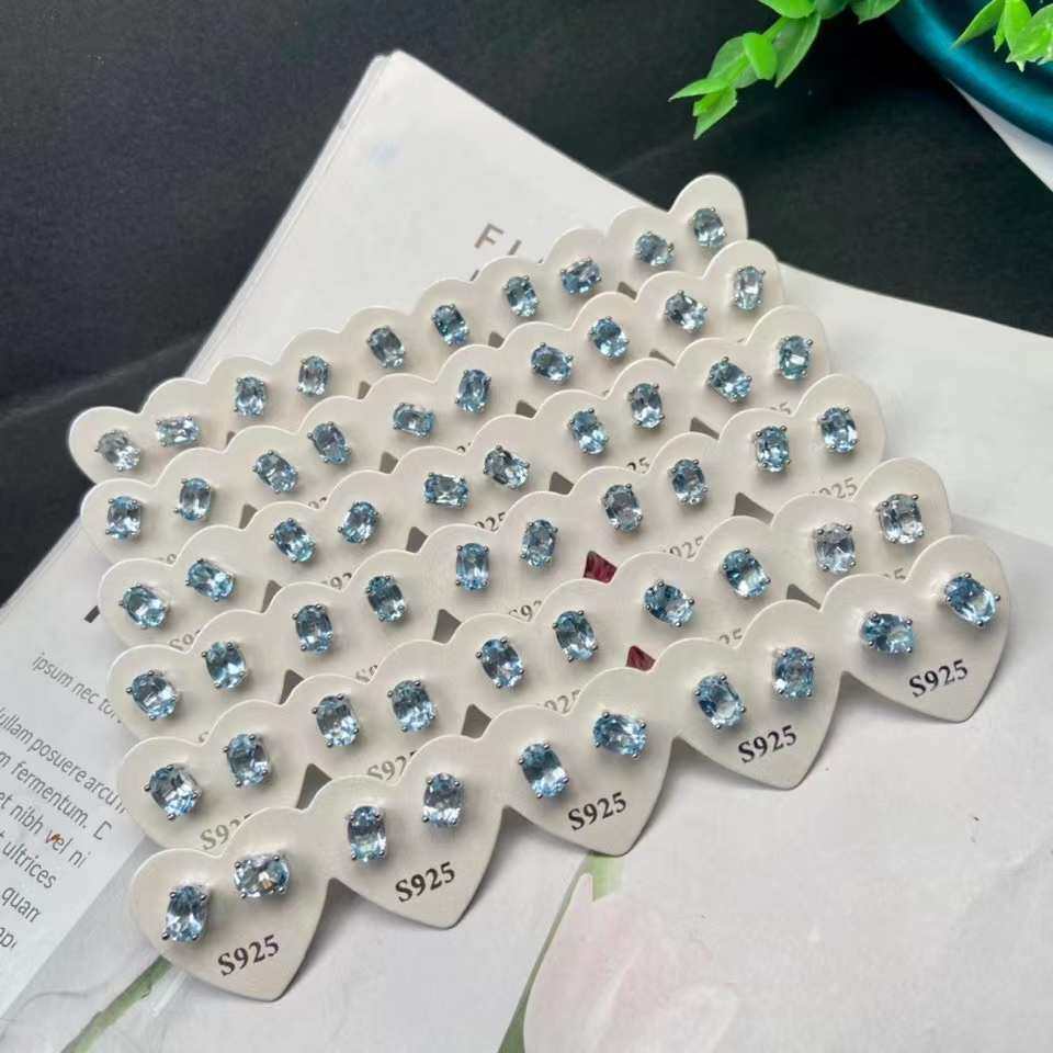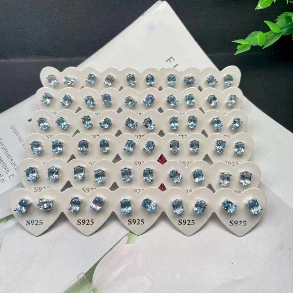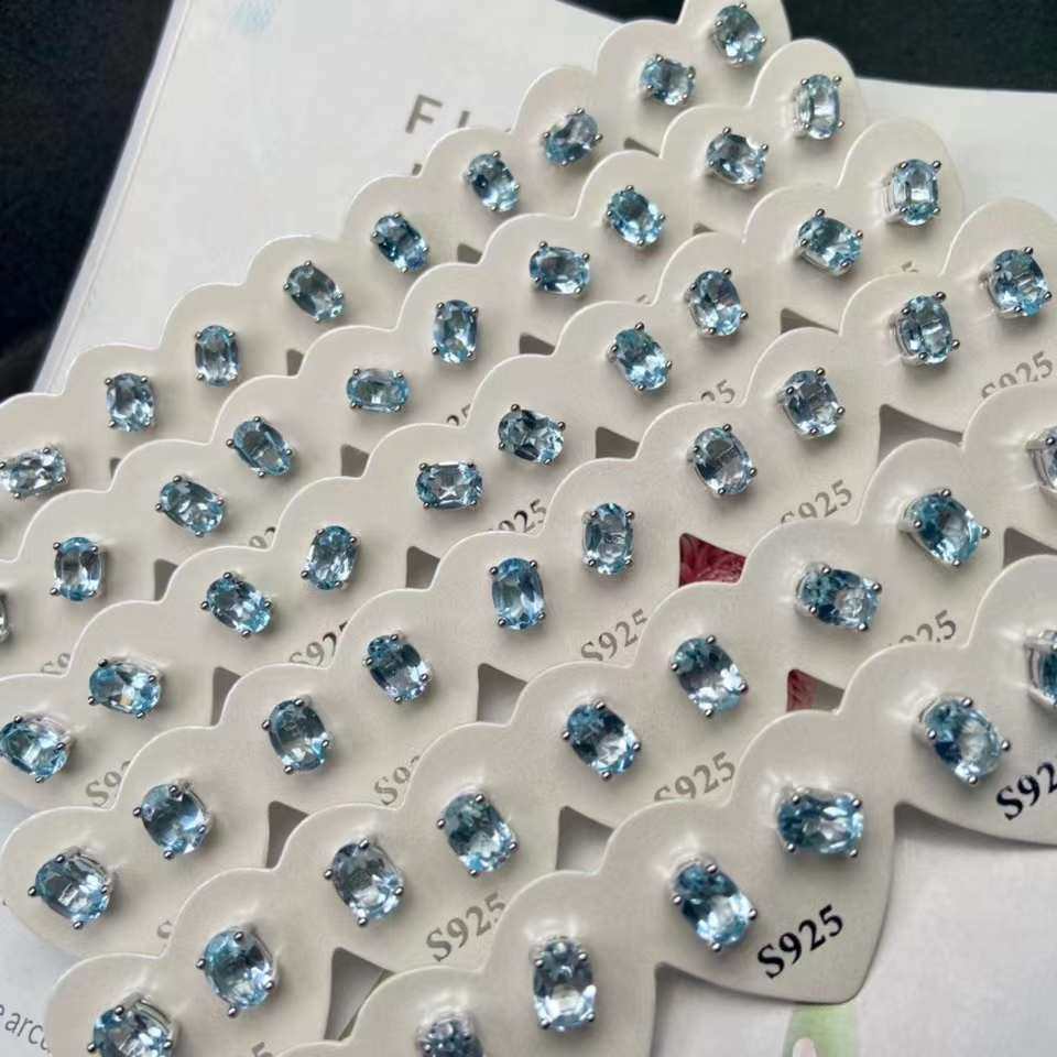 S925纯银针防过敏天然切角托帕石耳钉美丽天空蓝轻奢小众高级气质