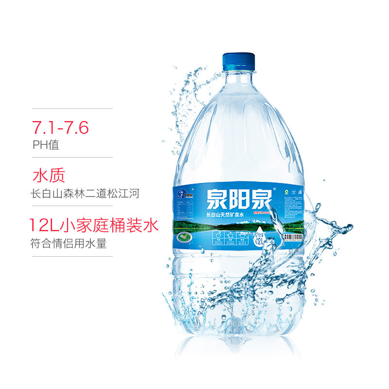泉阳泉长白山天然弱碱性饮用水可放饮水机12L升家庭大桶装矿泉水