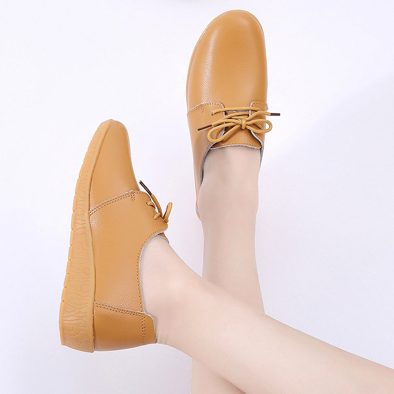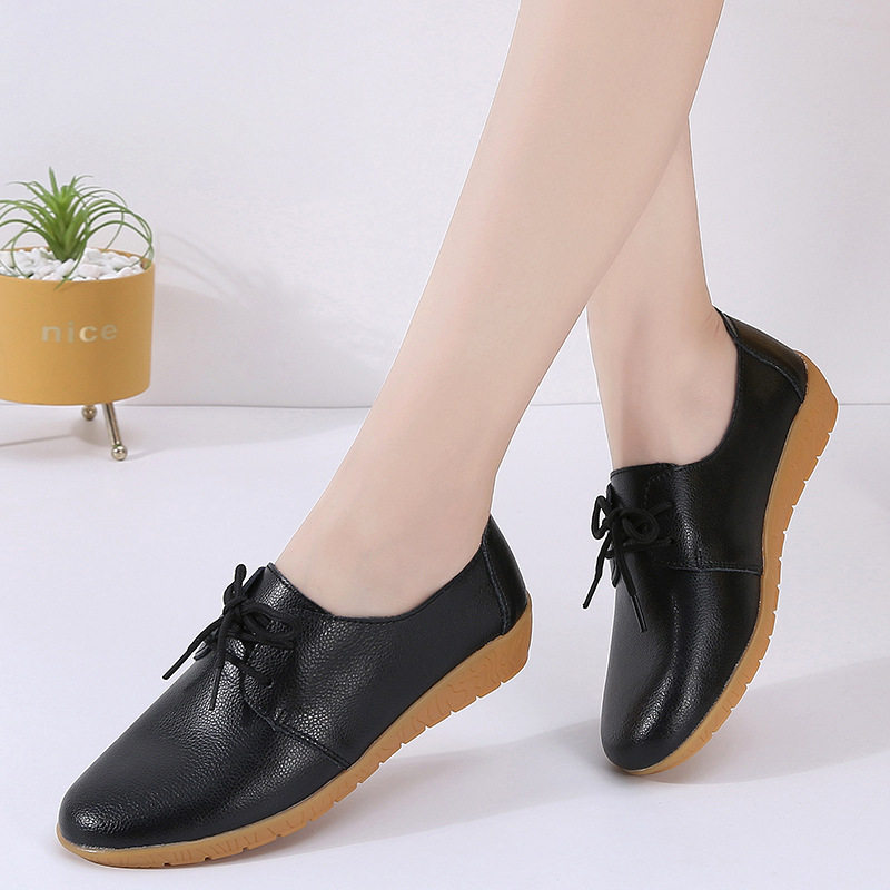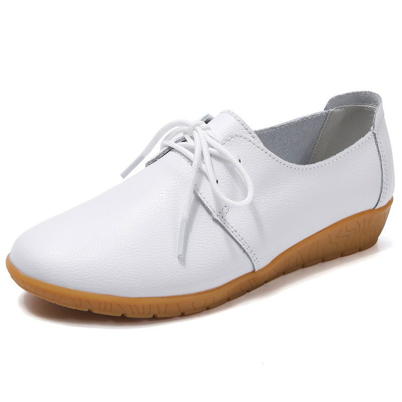 春季新款真皮女鞋系带坡跟休闲小白鞋女软底工作鞋圆头防滑单鞋女