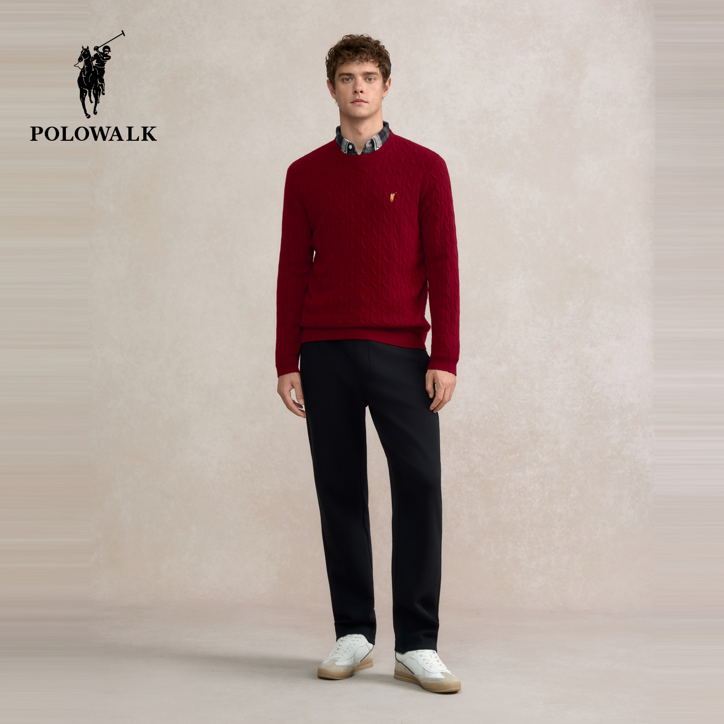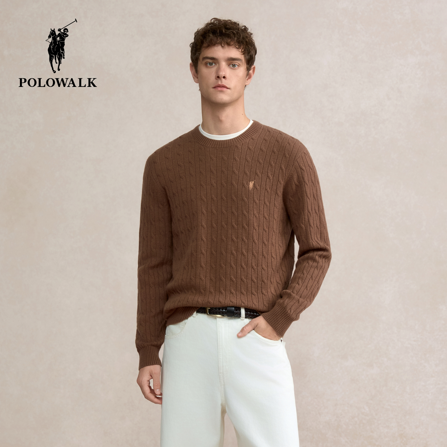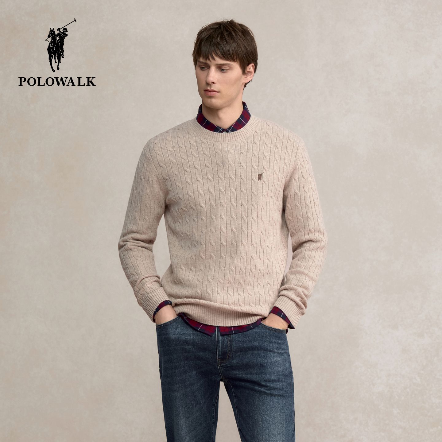 【100%绵羊毛】POLOWALK男士2025秋冬新款针织衫圆领绞花羊毛衫男