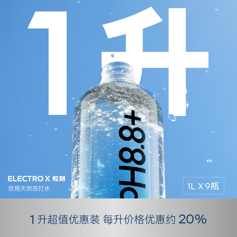 ELECTROX粒刻饮用天然苏打水碱性冷矿泉1升苏大水pH8.8大容量补水