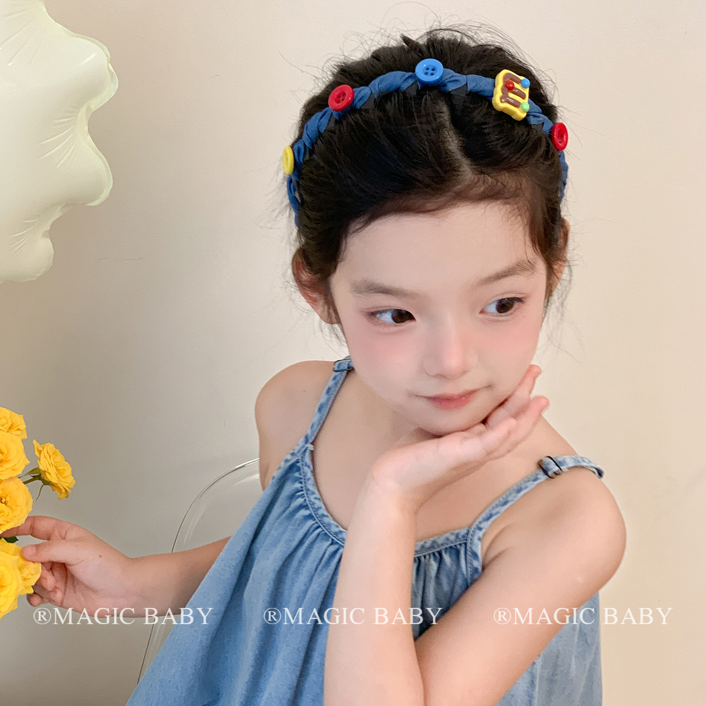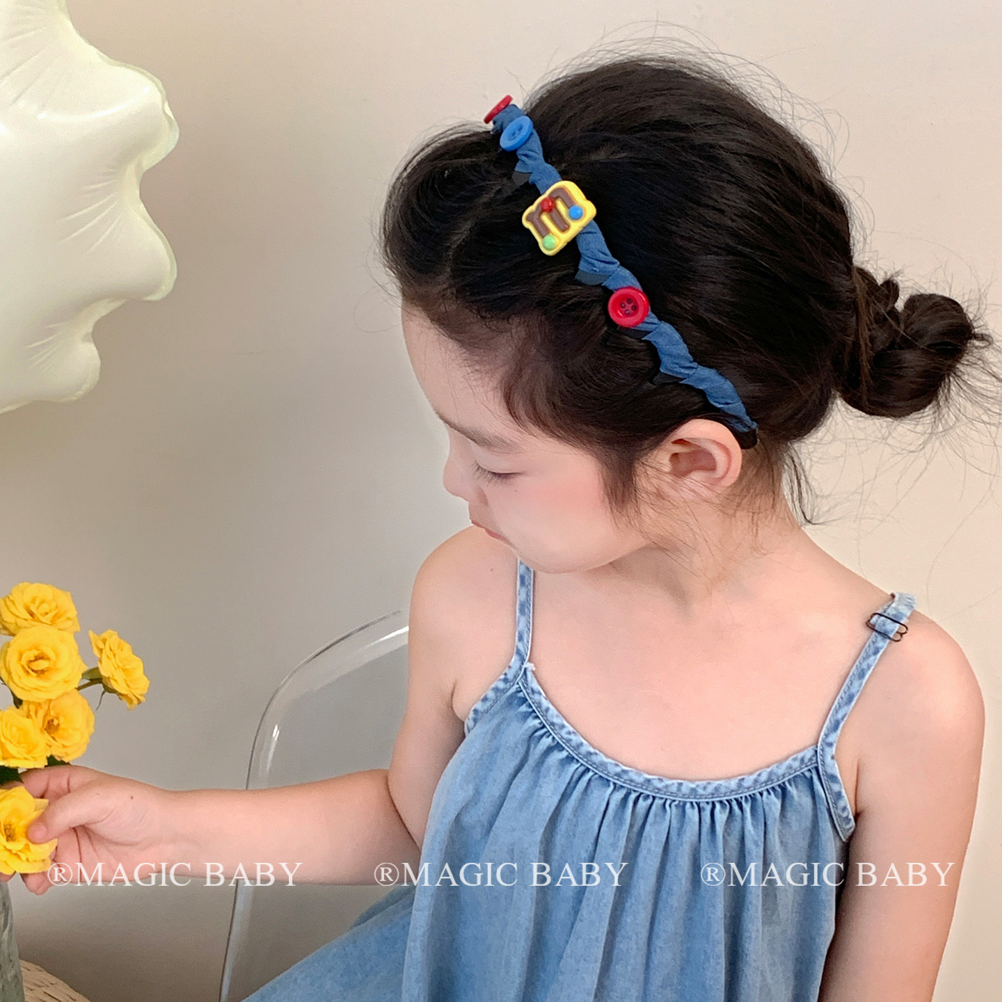 韩系儿童牛仔带齿防滑发箍小女孩上学百搭刘海碎发整理头箍发卡