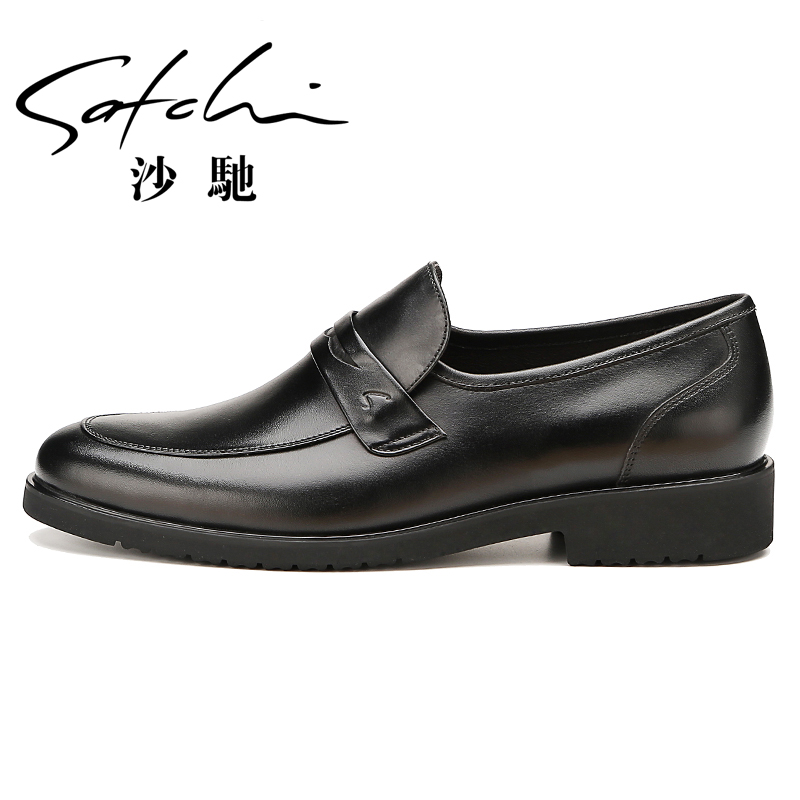 沙驰男鞋春秋舒适透气一脚蹬男鞋休闲皮鞋真皮鞋男商务正装乐福鞋