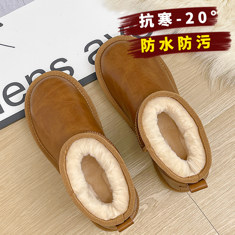 2025新款防水雪地靴女皮毛一体保暖加绒短筒百搭冬季真皮防滑棉鞋