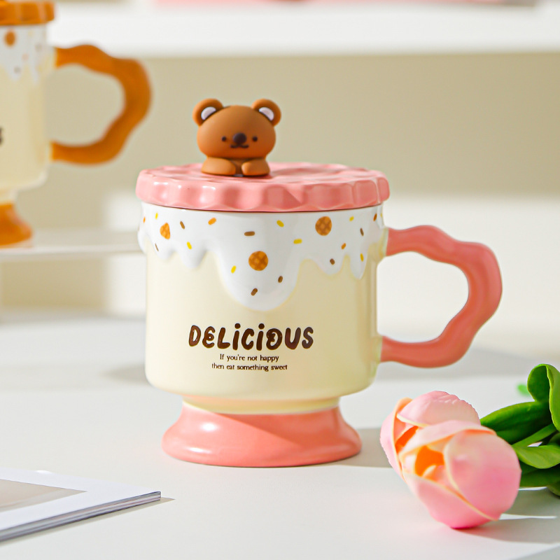 可爱陶瓷马克杯送姐妹闺蜜生日礼物高颜值女生水杯带盖勺咖啡杯子