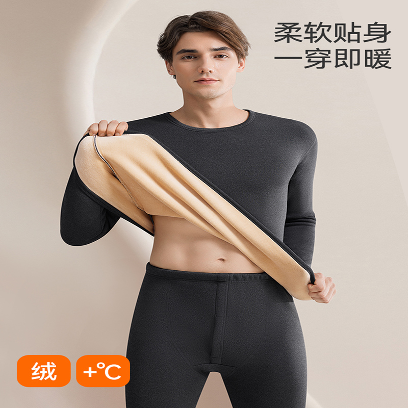 羊羔绒保暖内衣男加厚加绒德发热防寒打底衣秋衣秋裤男士套装冬季