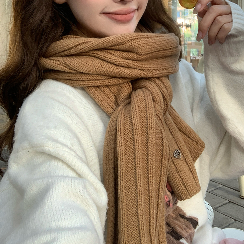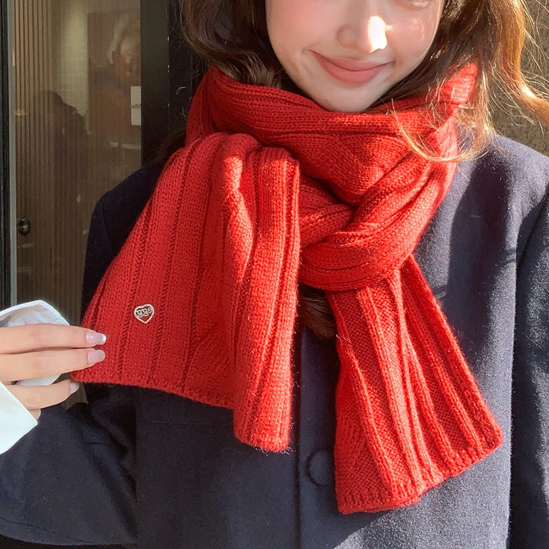 含羊毛针织纯色围巾秋冬百搭氛围感圣诞围脖情侣款毛线保暖围脖女