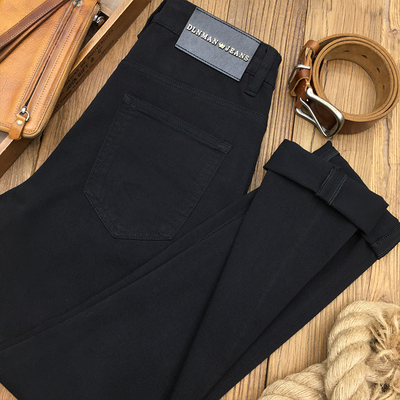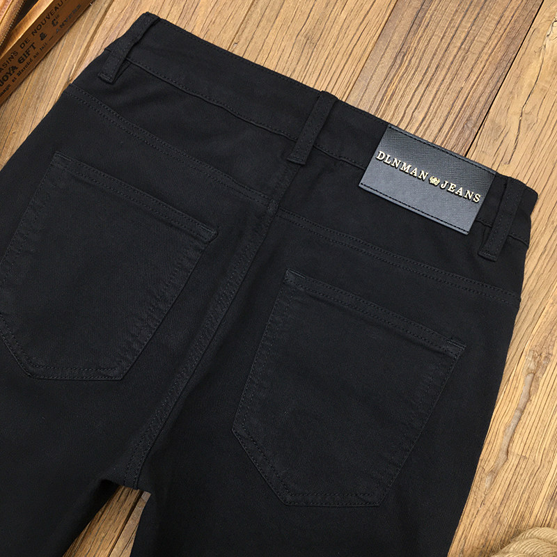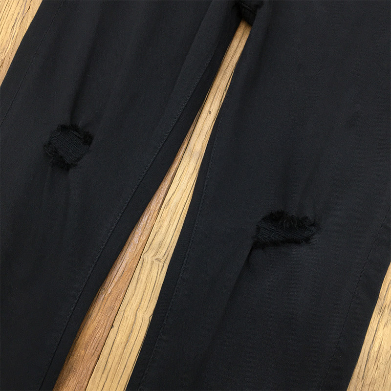 破洞黑色牛仔裤男夏季薄款高端潮流弹力修身小脚纯黑九分裤动力牛