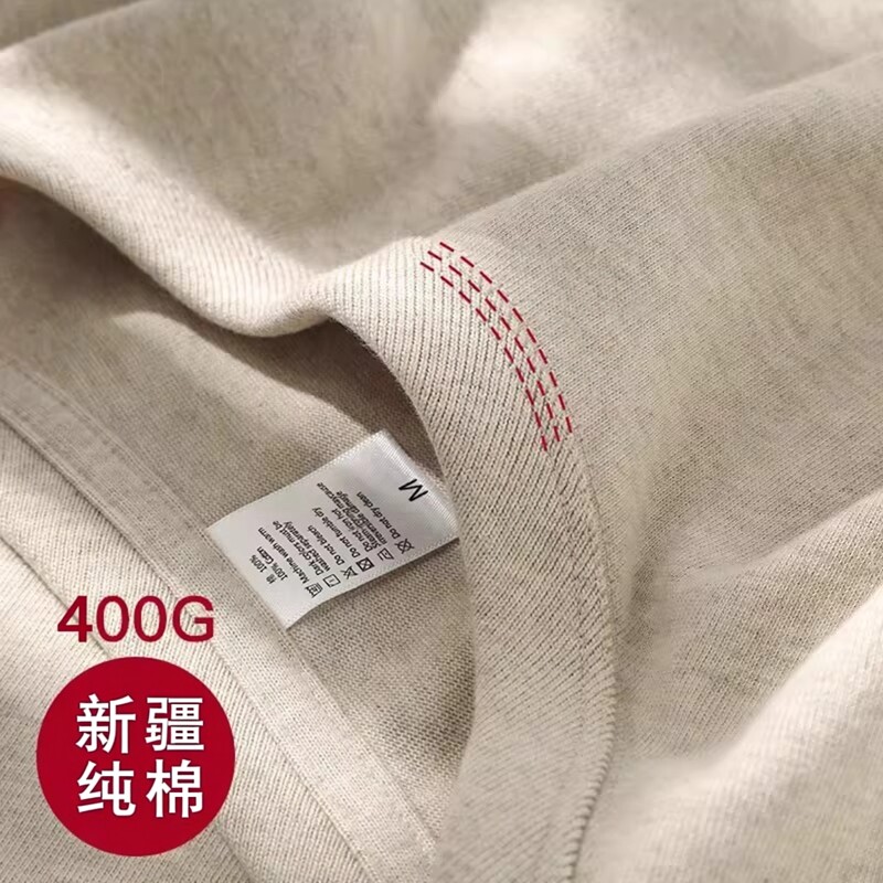 新疆纯棉400g重磅奶茶色圆领长袖t恤春秋季宽松内搭打底衫男女款