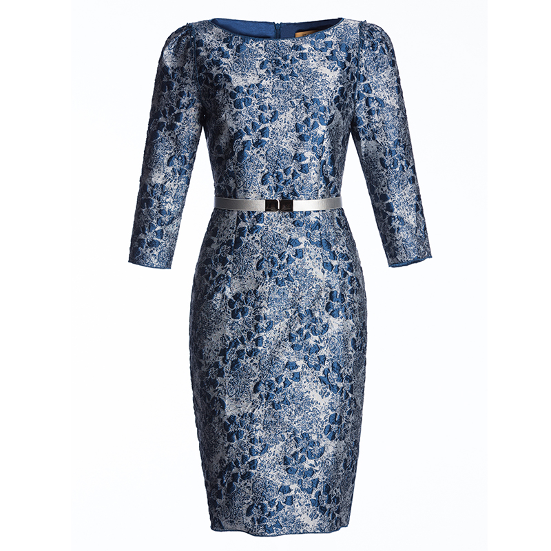 颈袖添香秋高档提花修身包臀名媛气质礼服商务工作正装连衣裙