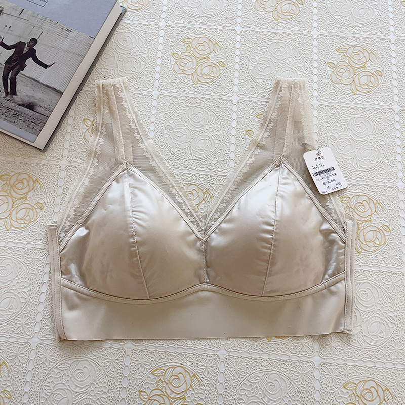 古妃美背无痕缎面蕾丝内衣女法式轻奢背心式文胸罩透气防走光抹胸