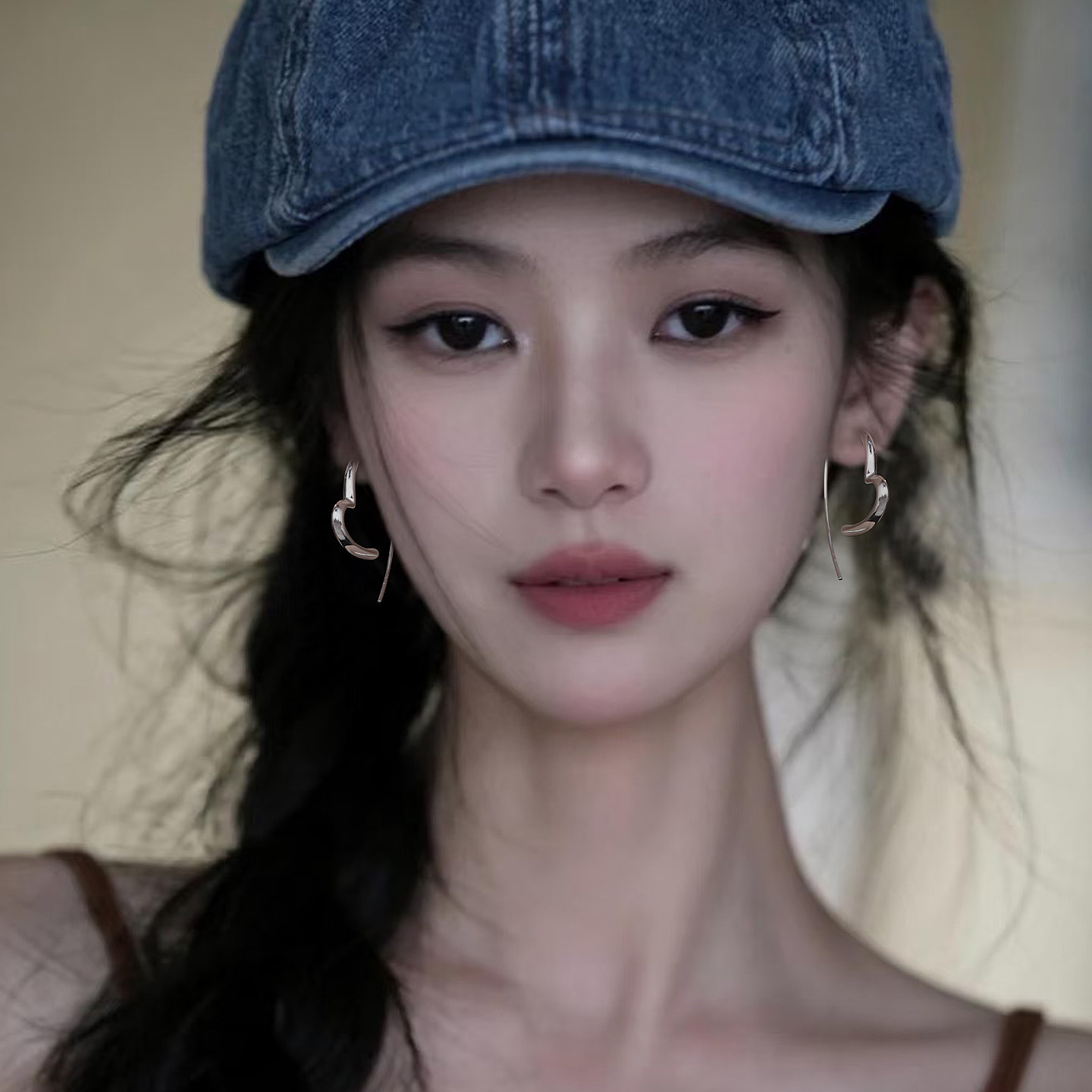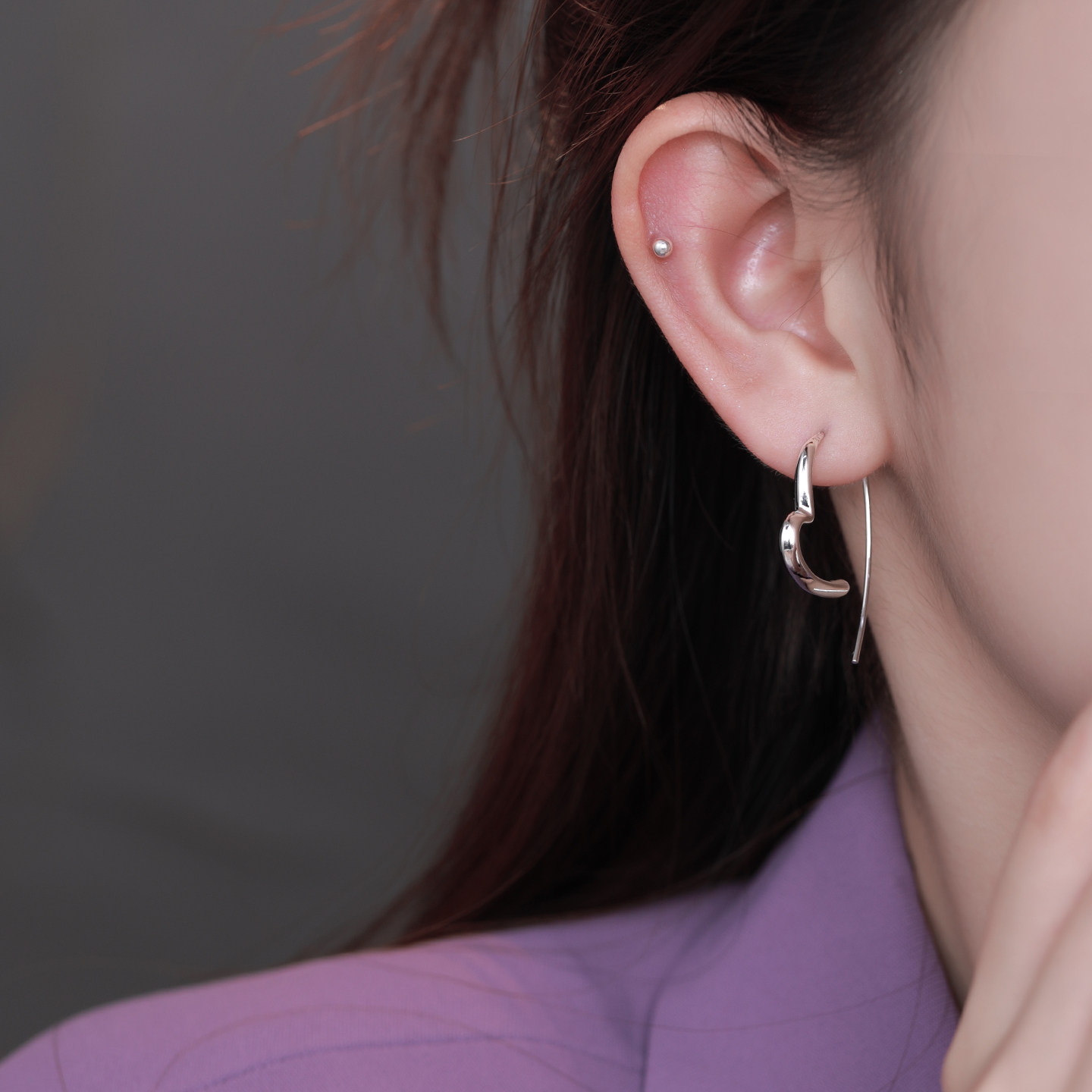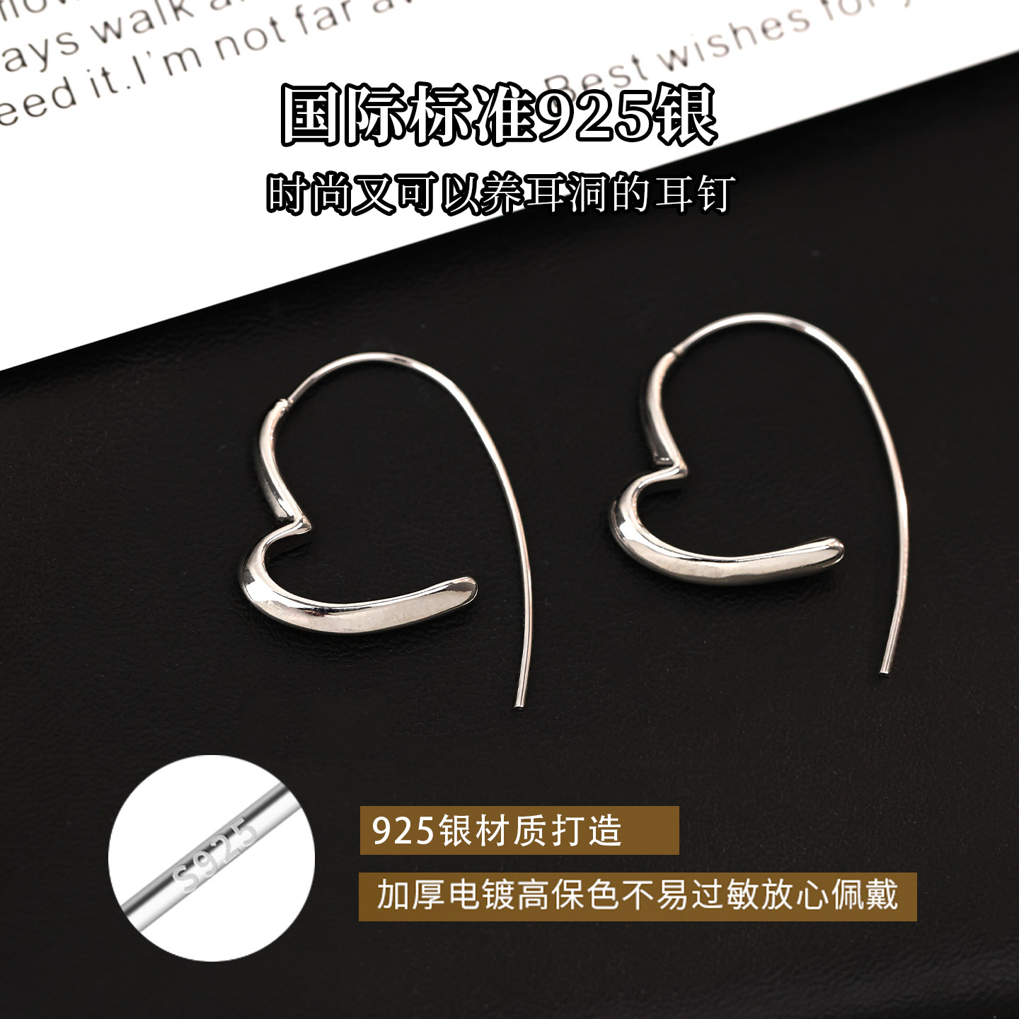 Z小姐 925银简约线条爱心耳环女时尚百搭气质高级感耳饰2025爆款