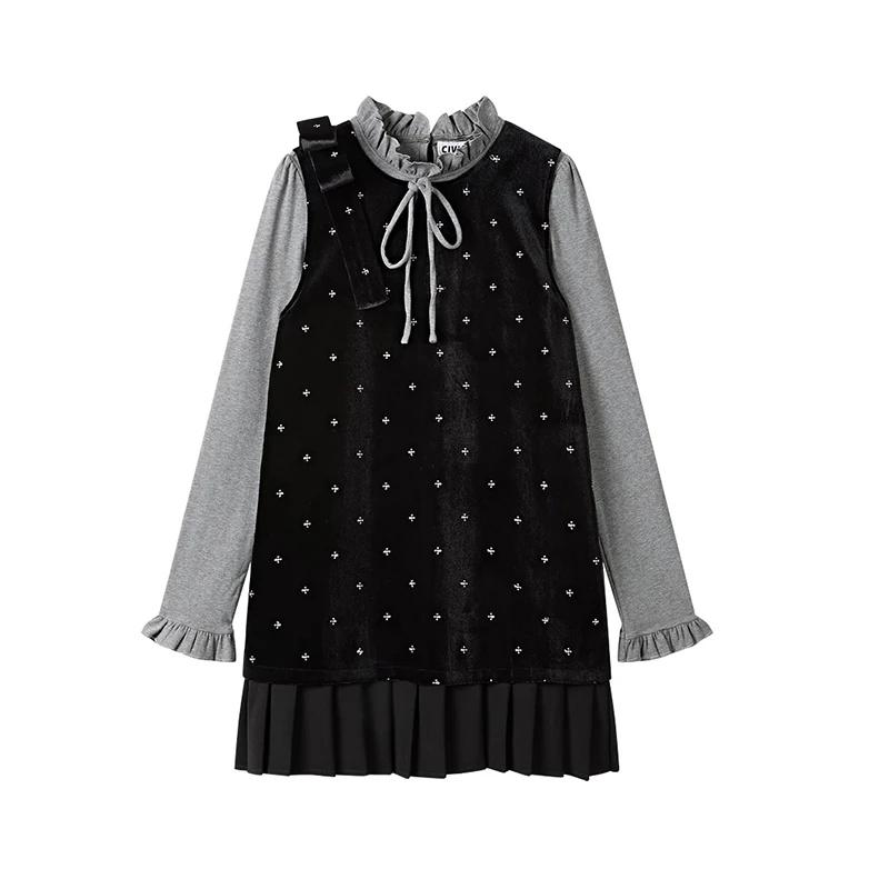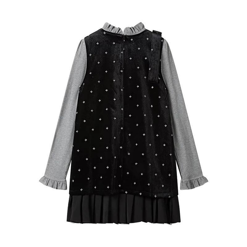 法式复古气质连衣裙套装女秋冬打底上衣刺绣背心裙两件套