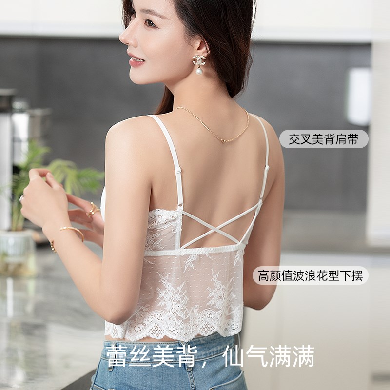 吊带背心式女薄款带胸垫美背蕾丝内衣防走光抹胸一体外穿打底裹胸