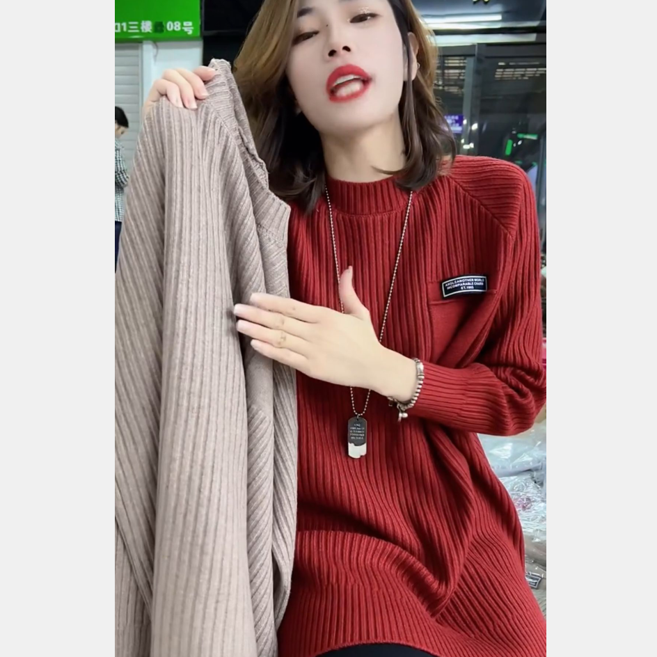 2025秋冬加厚中长款毛衣女保暖宽松加大码胖mm时尚针织打底衫洋气
