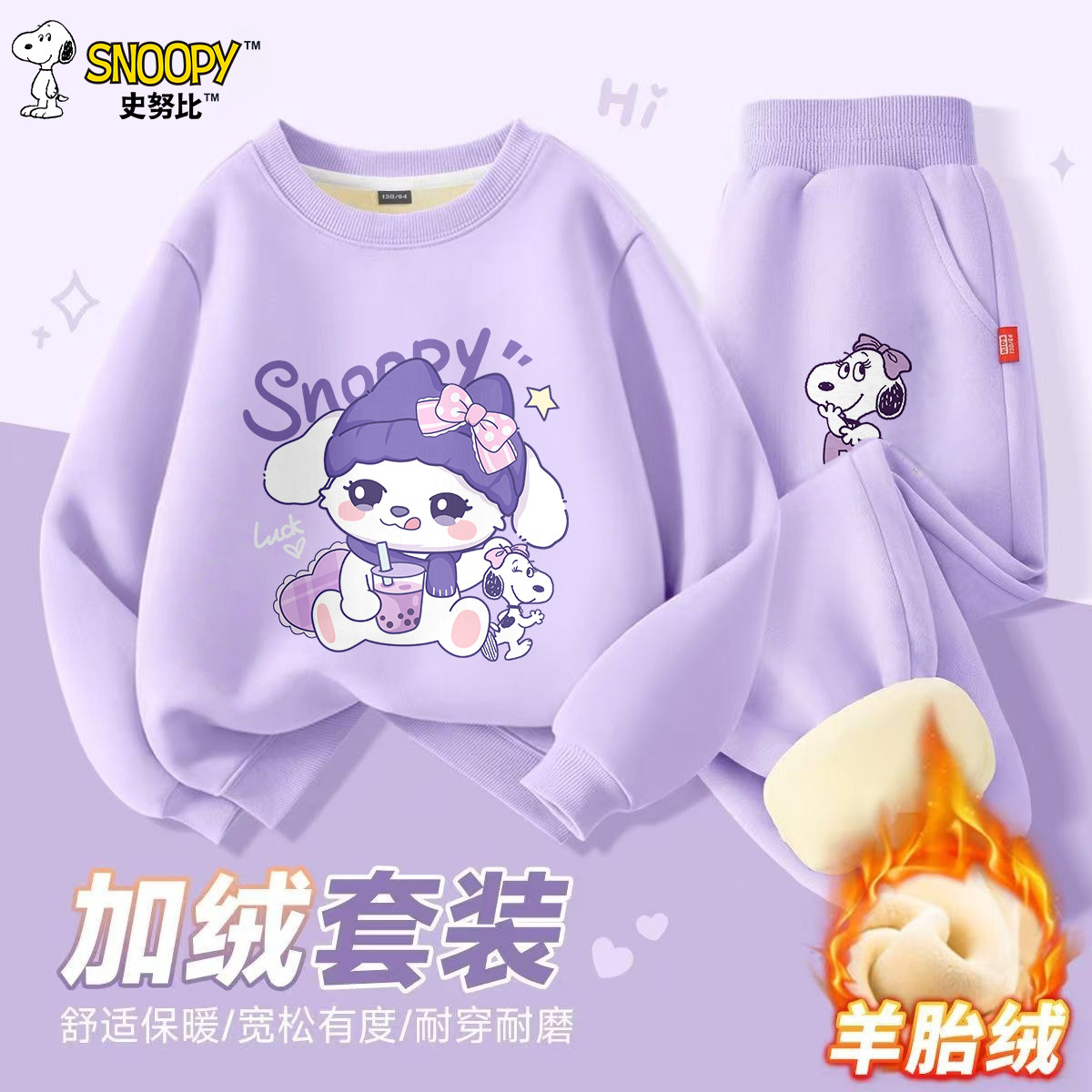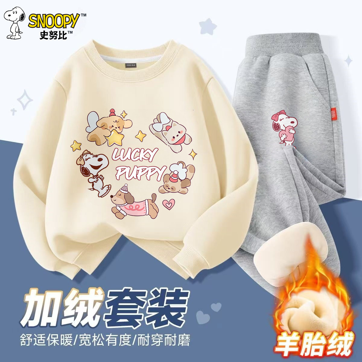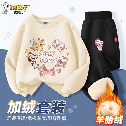 史努比秋冬儿童卫衣套装男女加绒加厚长袖圆领上衣中大童秋冬衣服