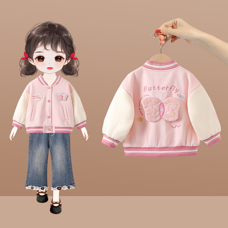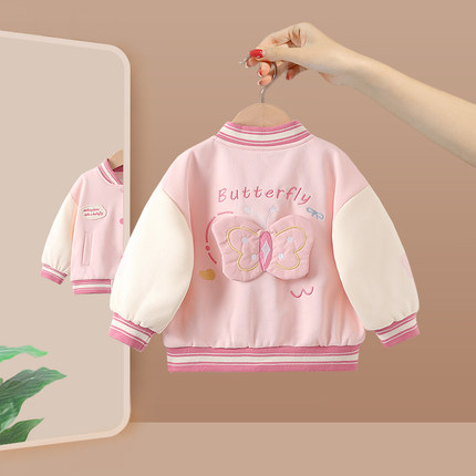 女童外套春秋季2025新款宝宝洋气时髦秋装上衣百搭休闲儿童棒球服