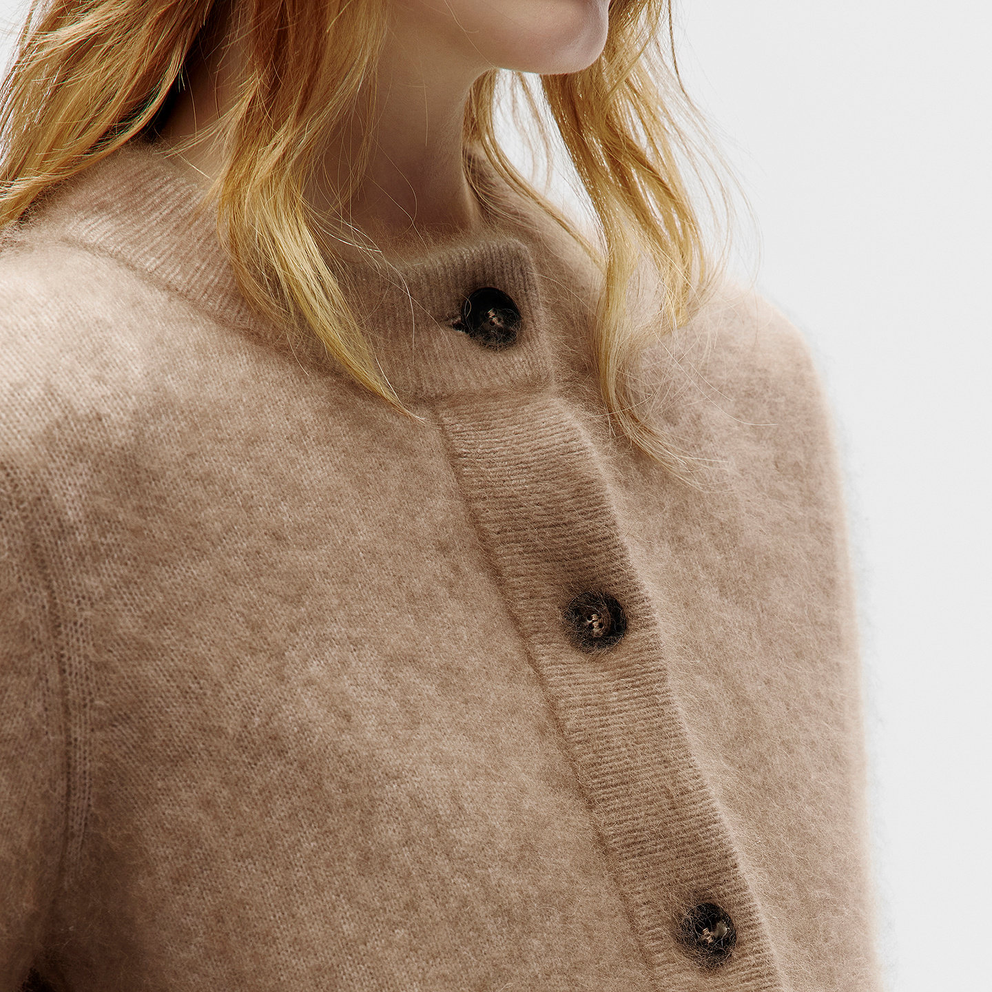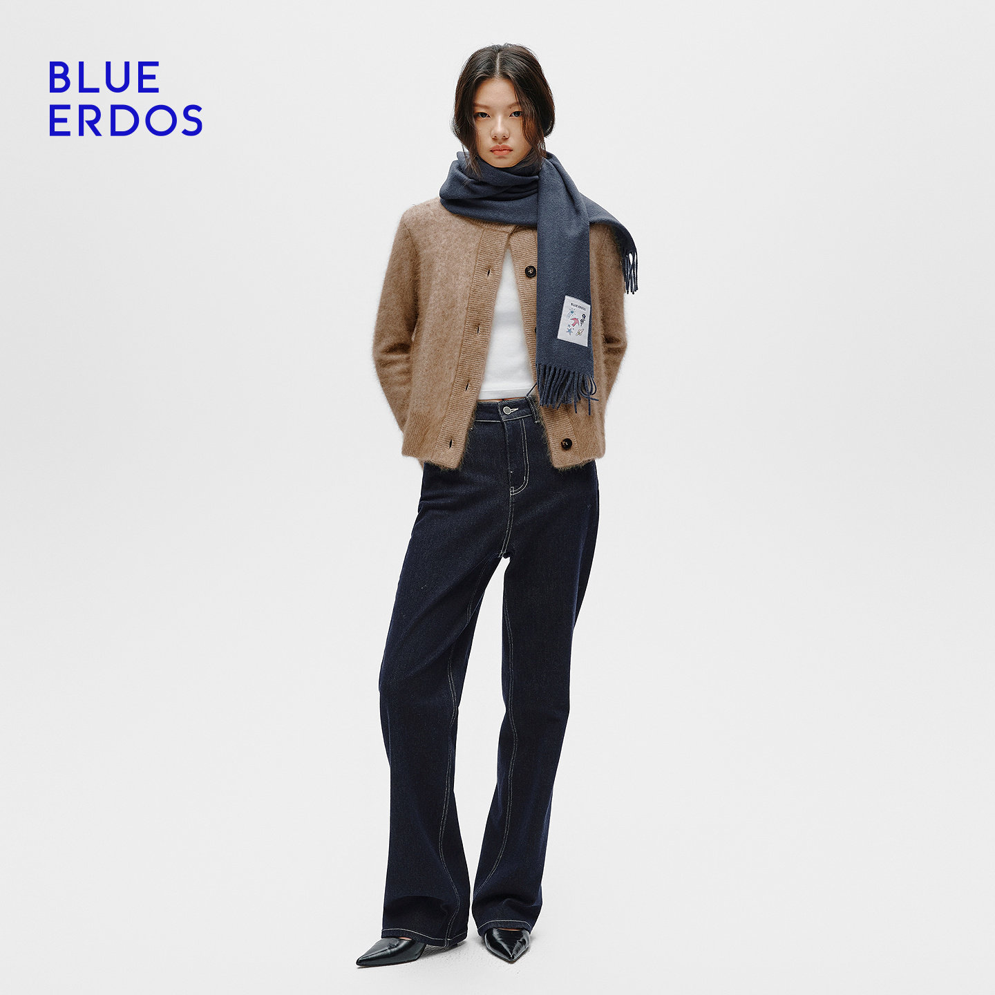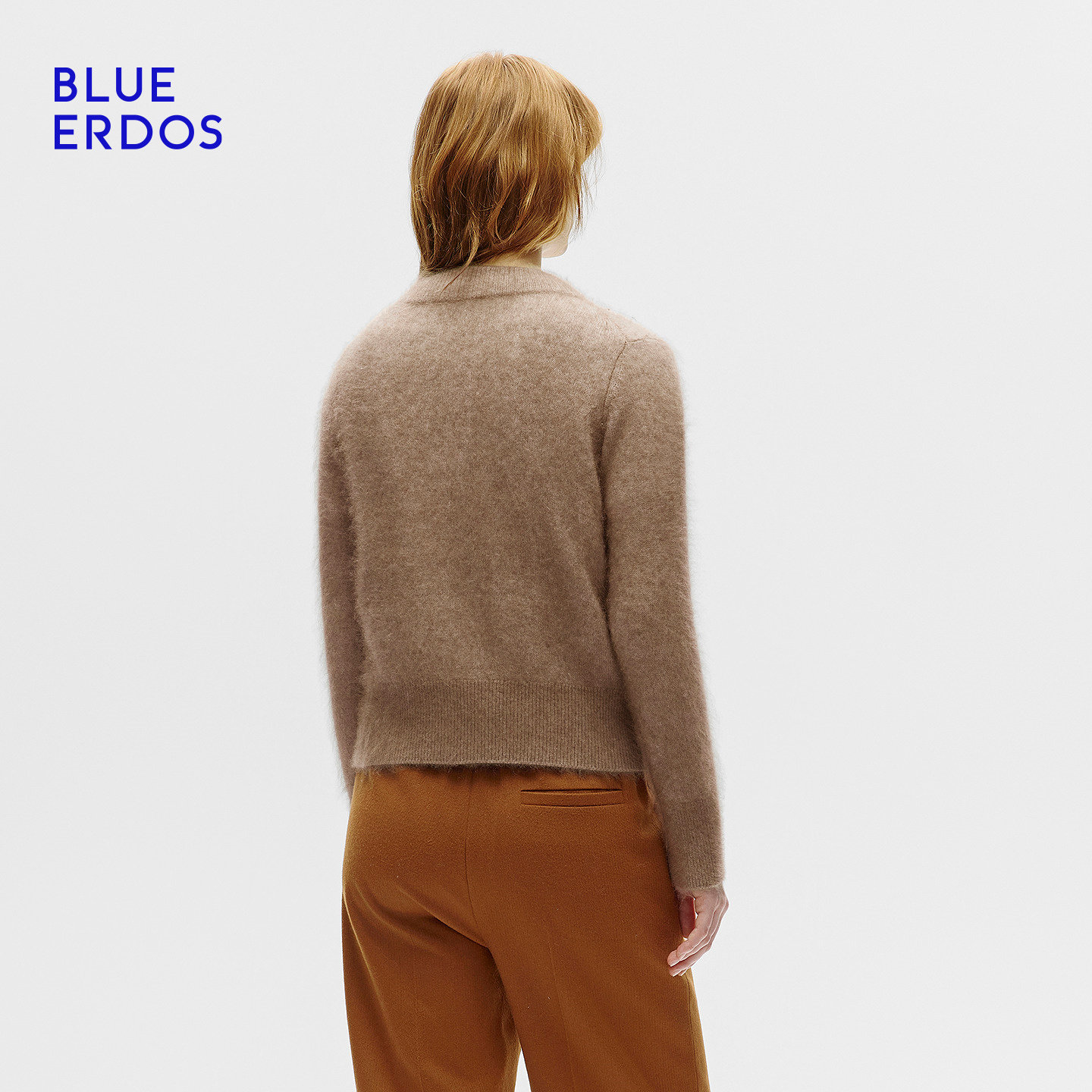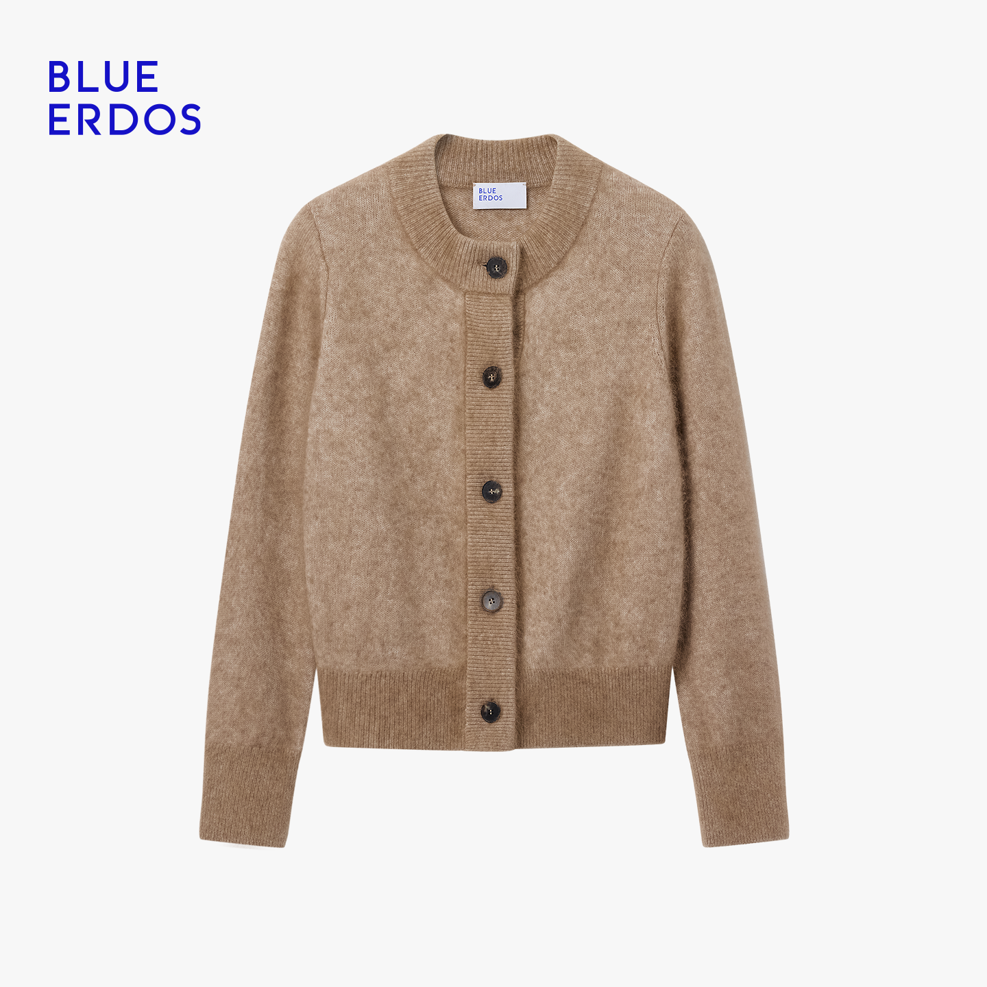 BLUE ERDOS 早秋新休闲百搭绵羊毛混纺圆领短款系扣针织开衫女