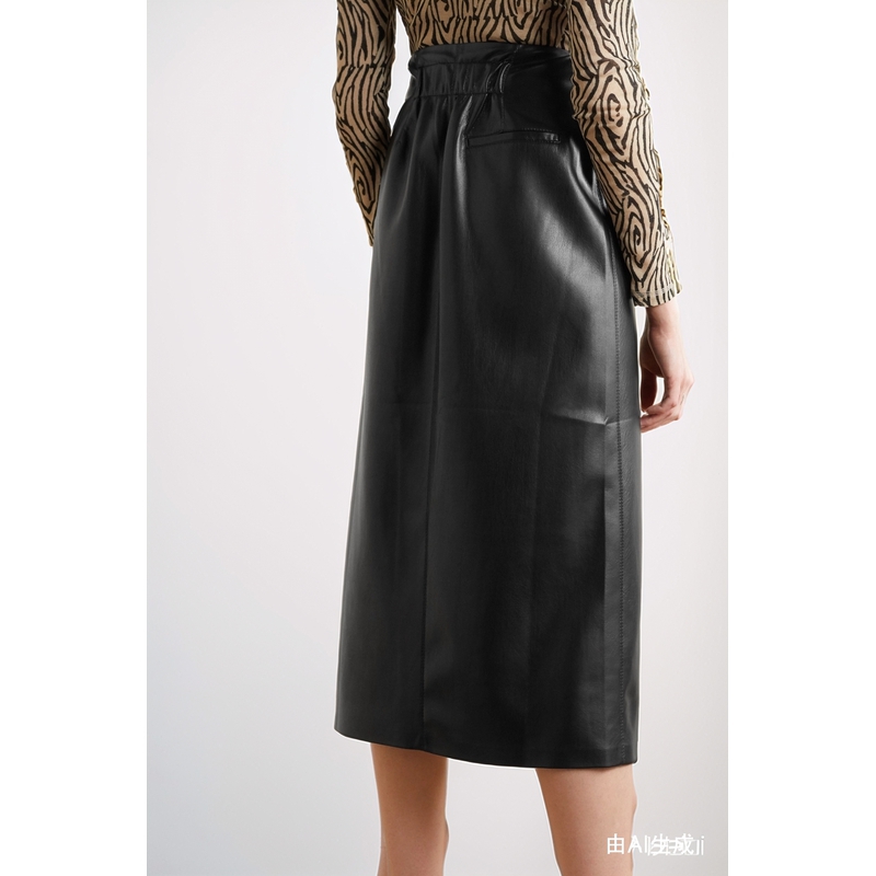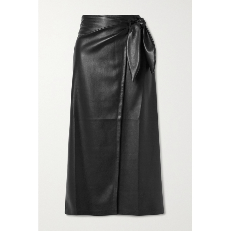 【折扣再降】Nanushka夏季女黑色仿皮革围裹长款半身裙
