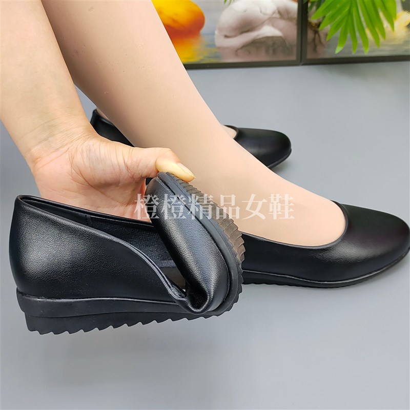 工作鞋女黑色平底软皮防水防滑软底酒店职业鞋一脚蹬上班单鞋百搭