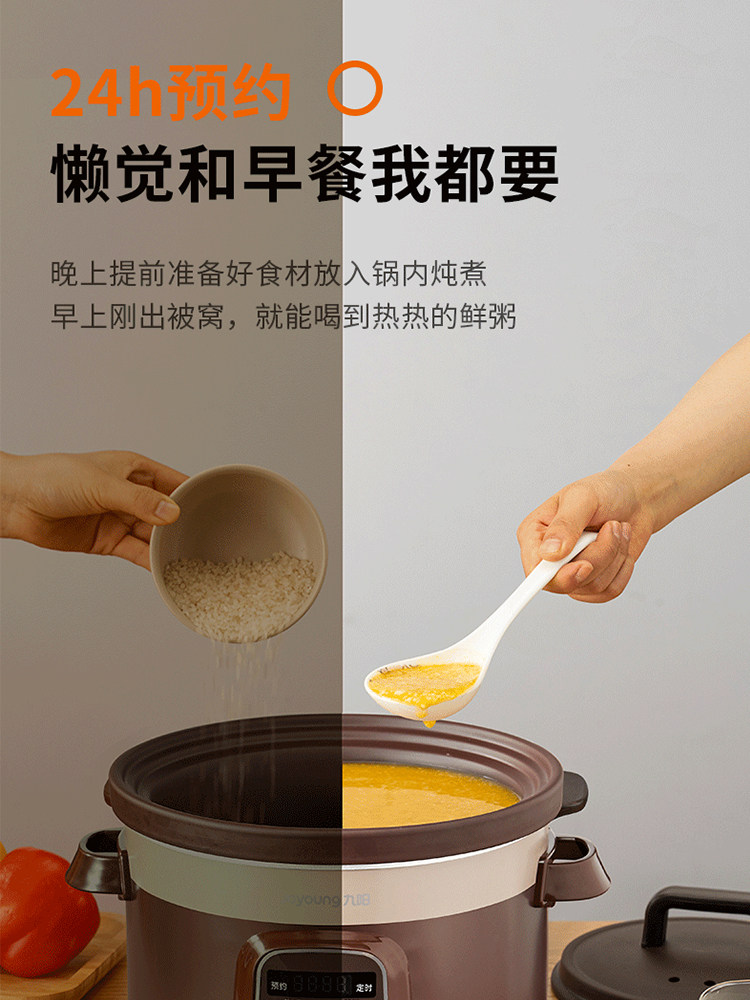 九阳电炖锅全自动煲汤锅陶瓷紫砂色煮粥电砂锅炖盅家用炖锅GD510