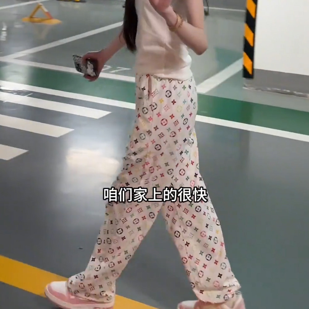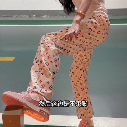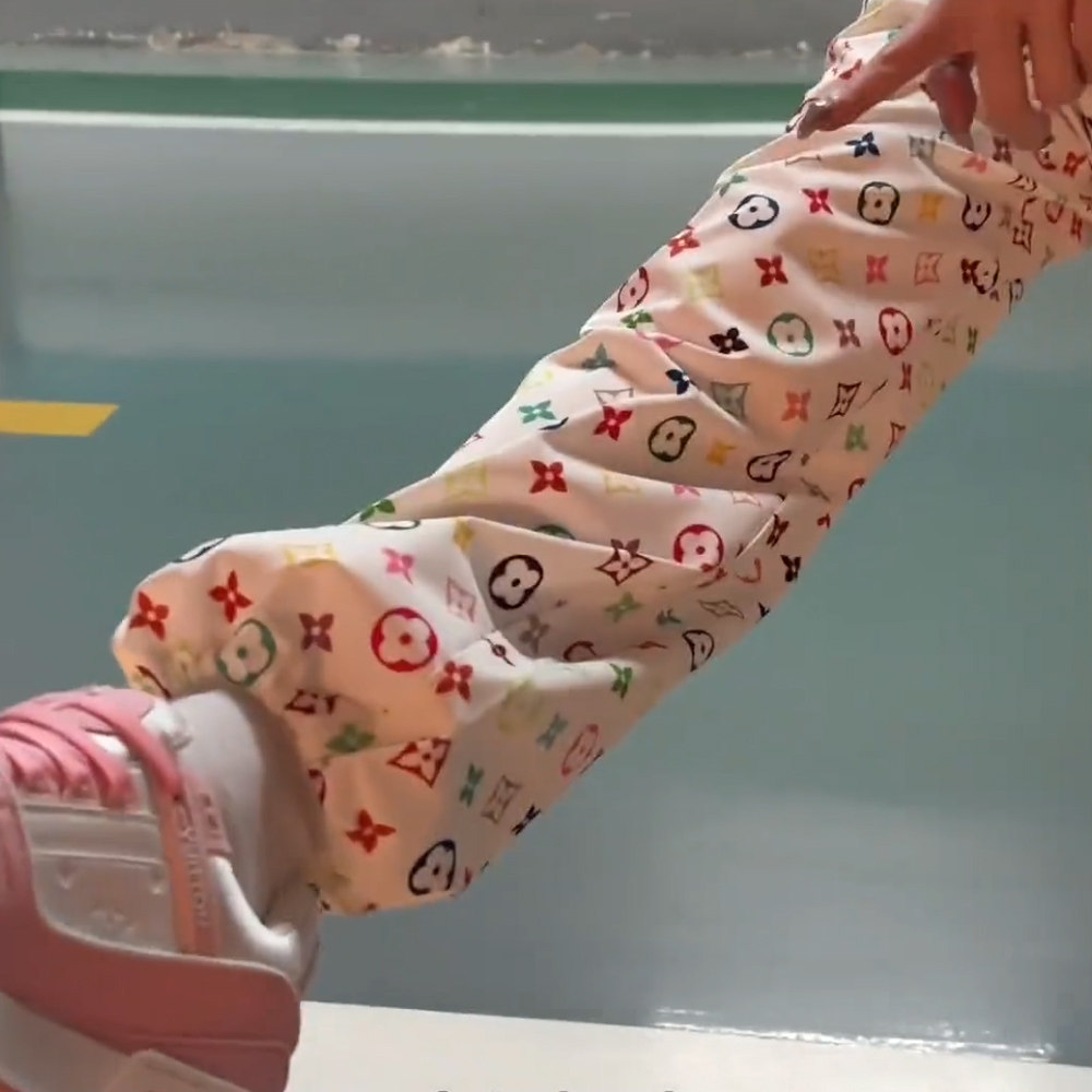 时尚满印休闲直筒裤女夏季新款减龄气质高腰显瘦百搭束脚两穿长裤